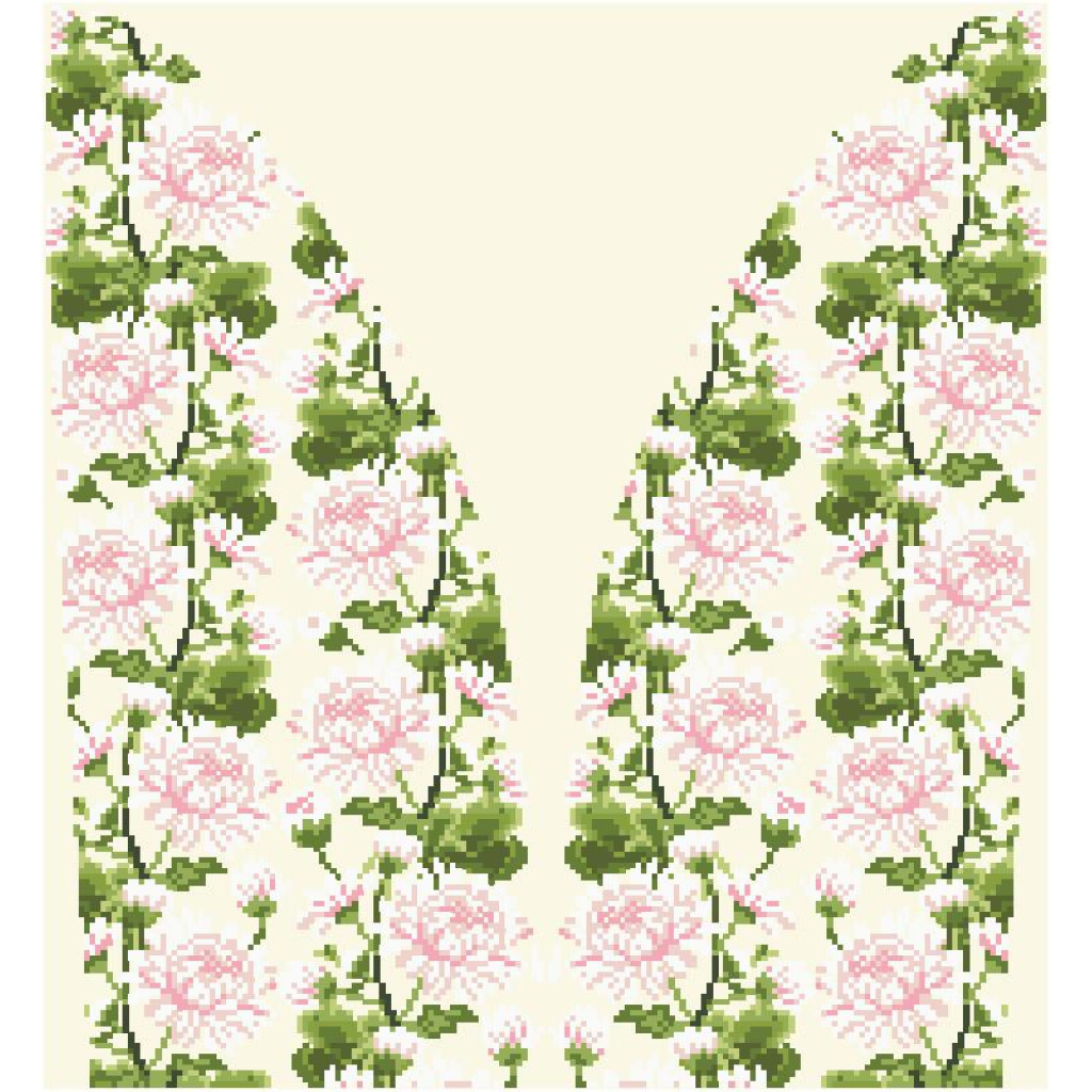 Заготовка для вишивки жіночої спідниці Ніжні хризантеми призначена для часткової зашивки бісером або нитками. Схема надрукована на атлас-котоні бежевого кольору екологічно чистими стійкими фарбами, що не змиваються після прання. Відрізи розкроєні з урахуванням запасів для зручного вишивання та подальшого пошиття виробу.