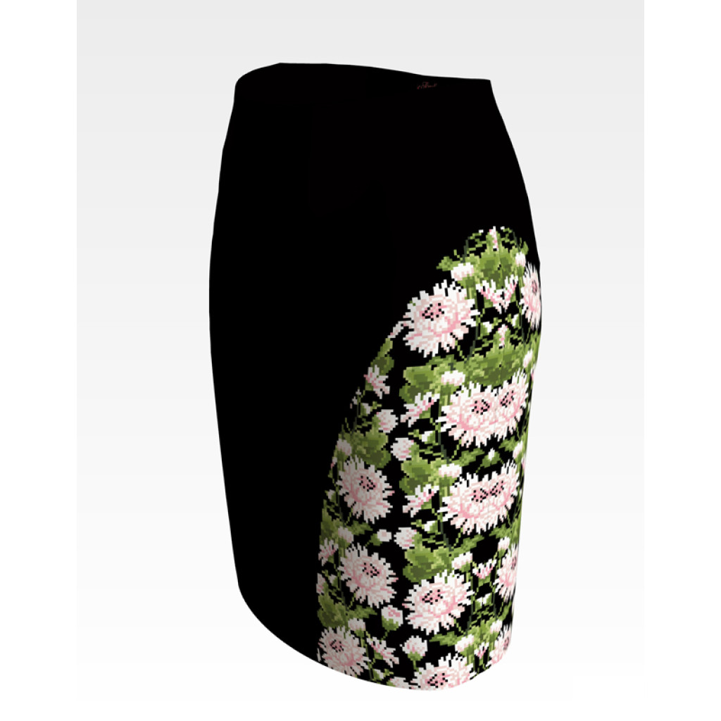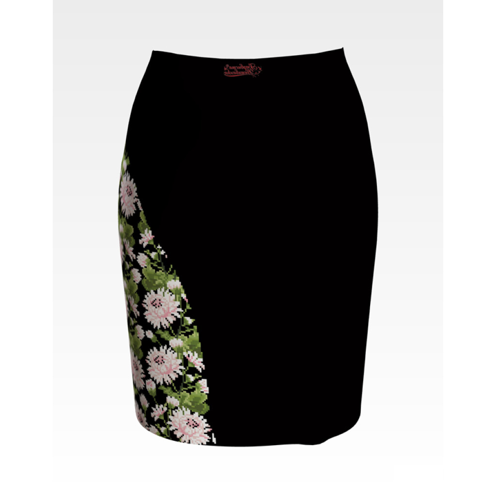 Заготовка для вишивки жіночої спідниці Ніжні хризантеми призначена для часткової зашивки бісером або нитками. Схема надрукована на шовковій тканині чорного кольору екологічно чистими стійкими фарбами, що не змиваються після прання. Відрізи розкроєні з урахуванням запасів для зручного вишивання та подальшого пошиття виробу.