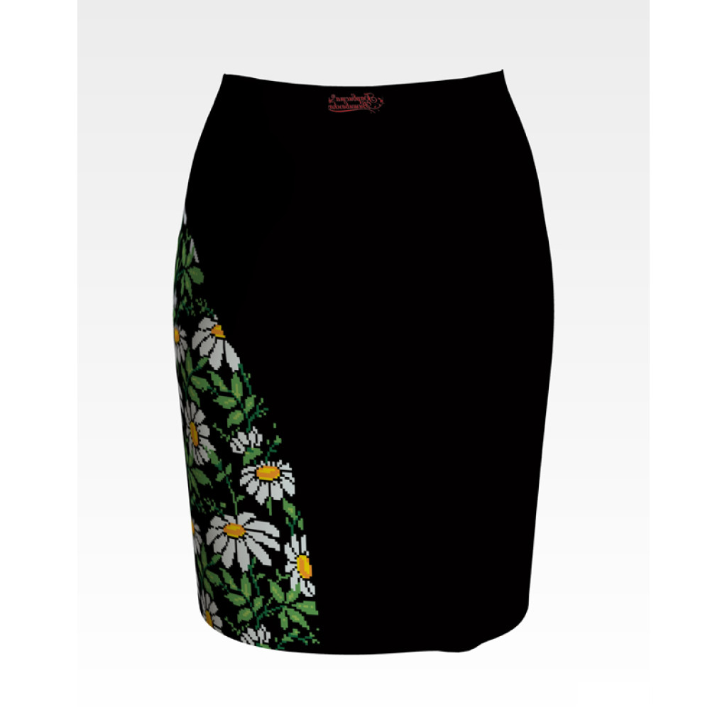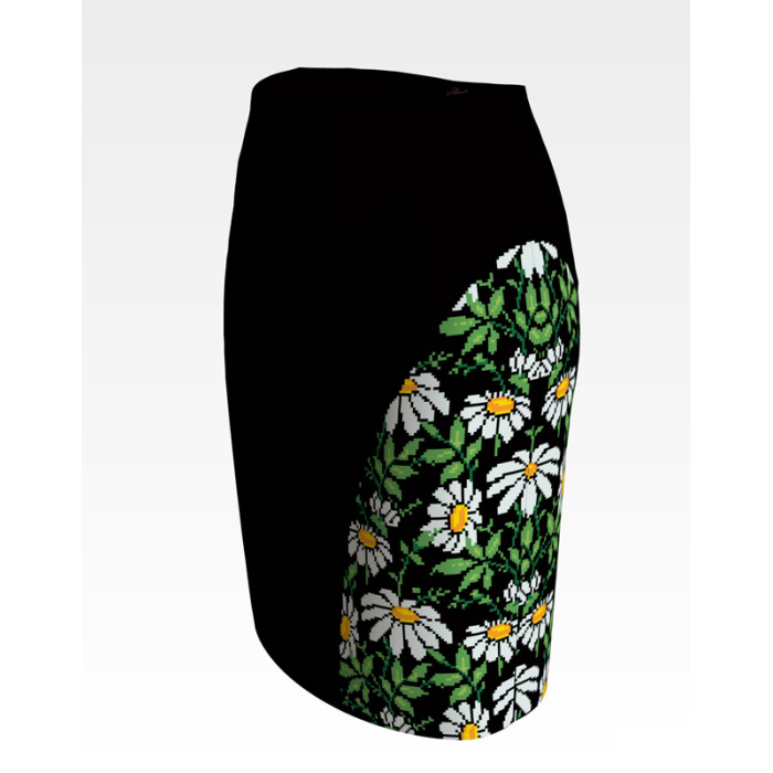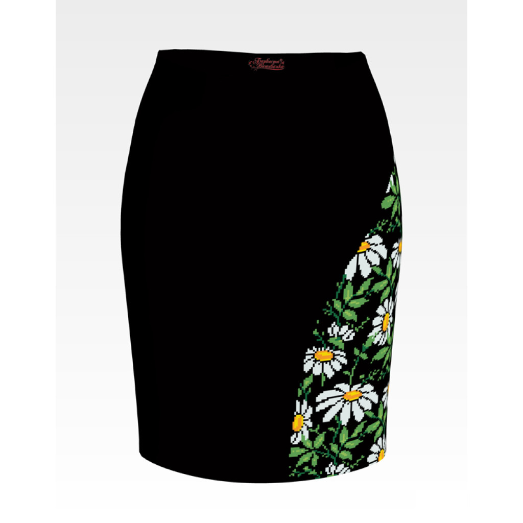 Заготовка для вишивки жіночої спідниці Ромашки призначена для часткової зашивки бісером або нитками. Схема надрукована на шовковій тканині чорного кольору екологічно чистими стійкими фарбами, що не змиваються після прання. Відрізи розкроєні з урахуванням запасів для зручного вишивання та подальшого пошиття виробу.