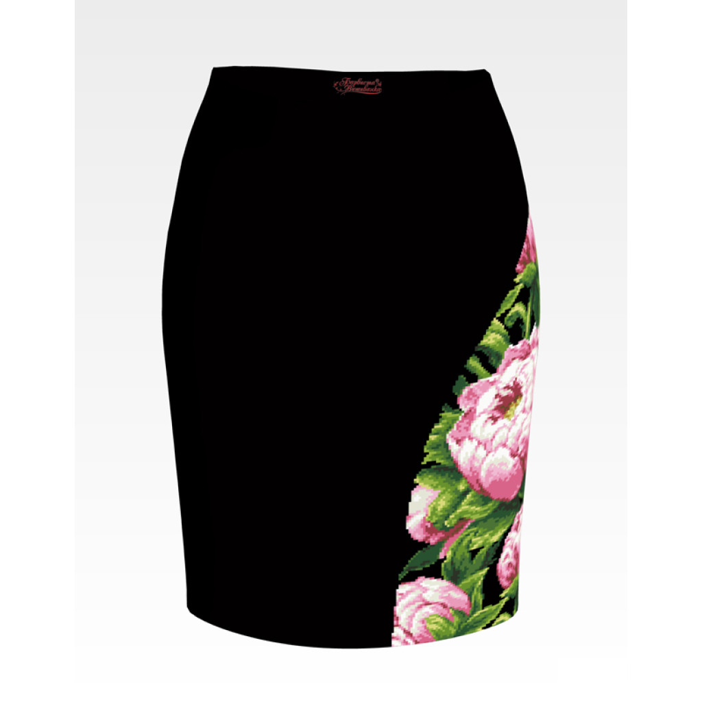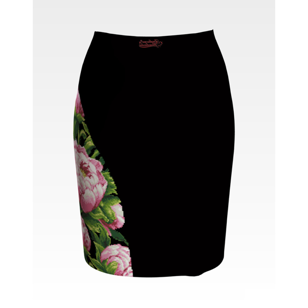 Заготовка для вишивки жіночої спідниці Пишні піони призначена для часткової зашивки бісером або нитками. Схема надрукована на шовковій тканині чорного кольору екологічно чистими стійкими фарбами, що не змиваються після прання. Відрізи розкроєні з урахуванням запасів для зручного вишивання та подальшого пошиття виробу.