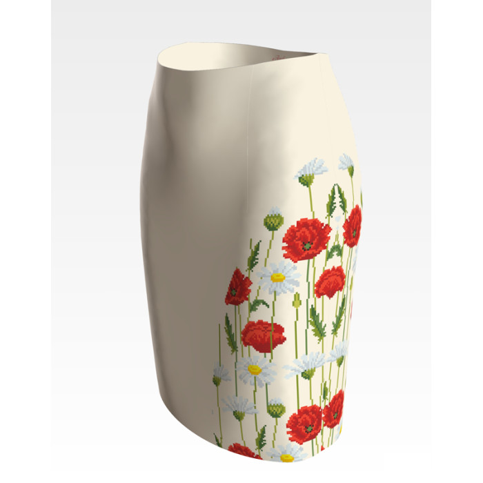 Заготовка для вишивки жіночої спідниці Ромашки і маки призначена для часткової зашивки бісером або нитками. Схема надрукована на шовковій тканині бежевого кольору екологічно чистими стійкими фарбами, що не змиваються після прання. Відрізи розкроєні з урахуванням запасів для зручного вишивання та подальшого пошиття виробу.