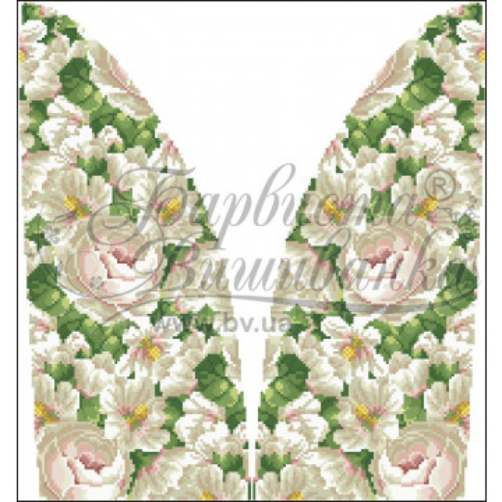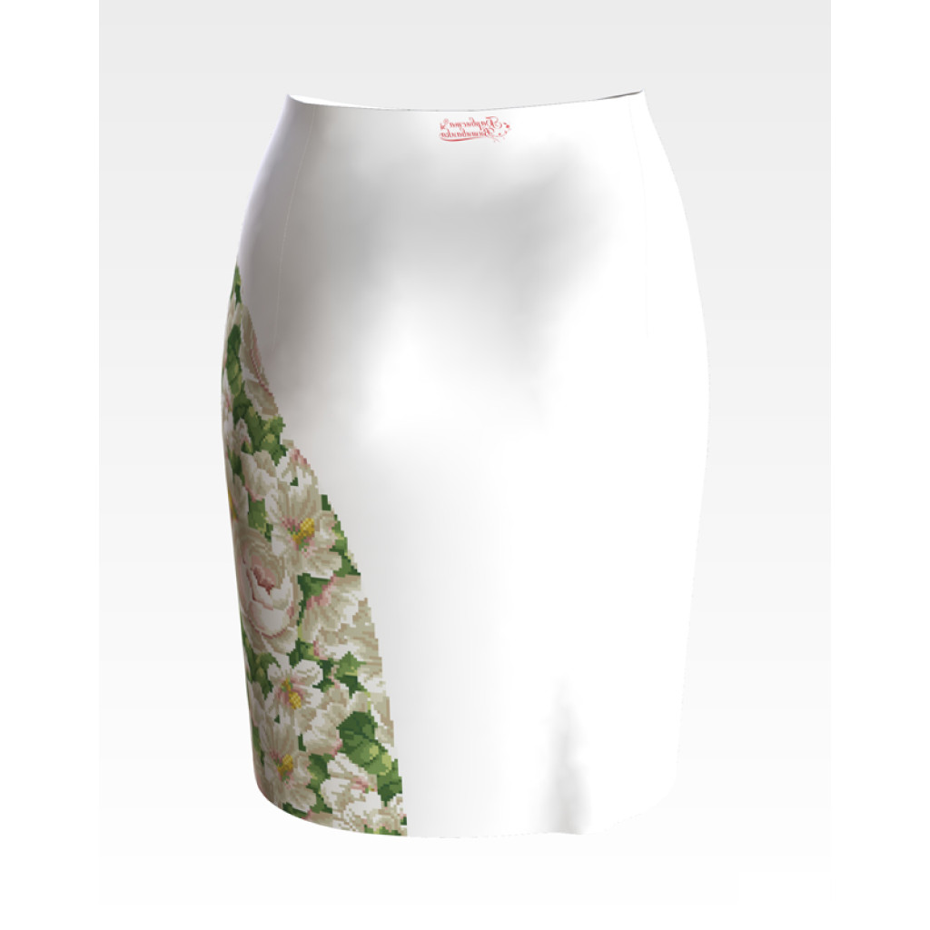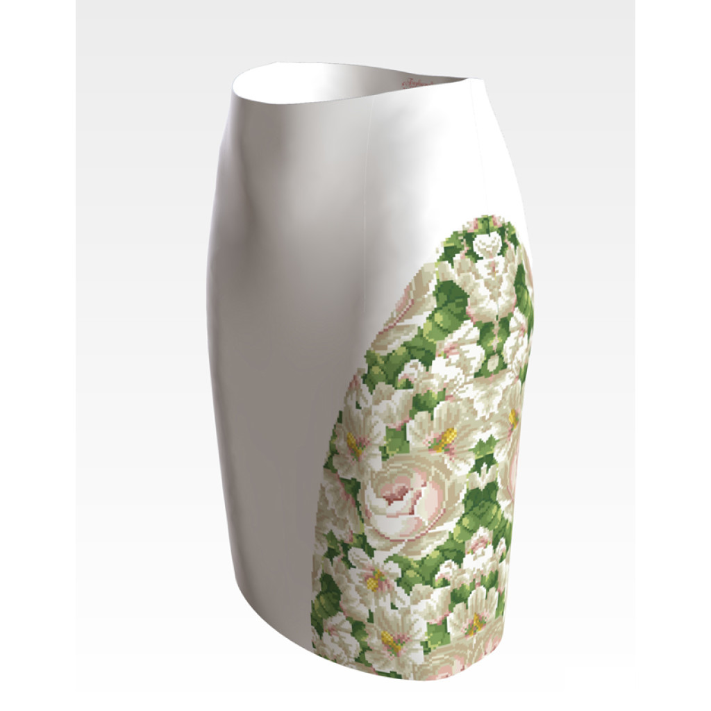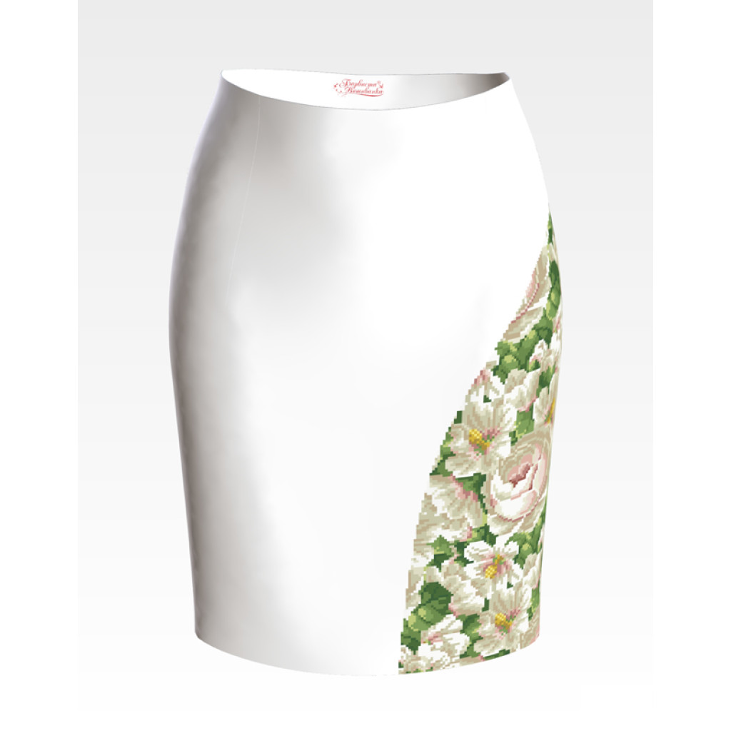 Заготовка для вишивки жіночої спідниці Білі мальви і троянди призначена для часткової зашивки бісером або нитками. Схема надрукована на білому габардині екологічно чистими стійкими фарбами, що не змиваються після прання. Відрізи розкроєні з урахуванням запасів для зручного вишивання та подальшого пошиття виробу.