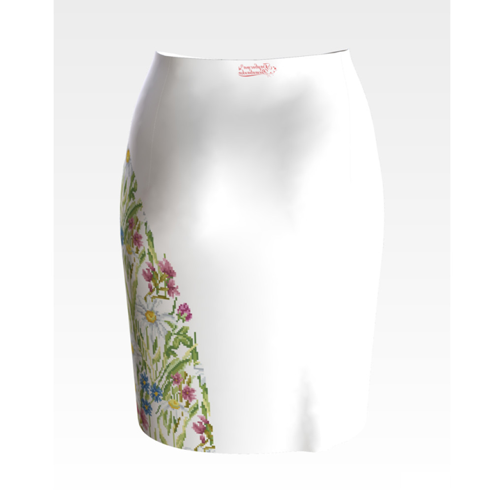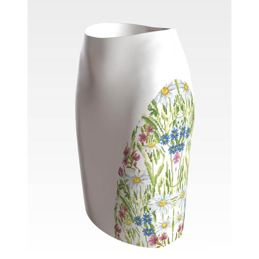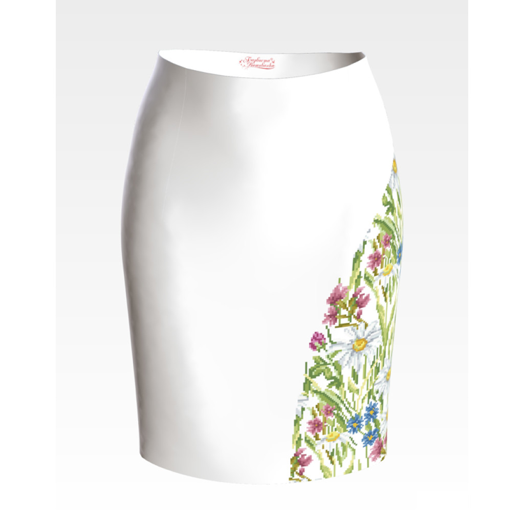 Заготовка для вишивки жіночої спідниці Ромашки, волошки, дзвіночки призначена для часткової зашивки бісером або нитками. Схема надрукована на білому габардині екологічно чистими стійкими фарбами, що не змиваються після прання. Відрізи розкроєні з урахуванням запасів для зручного вишивання та подальшого пошиття виробу.