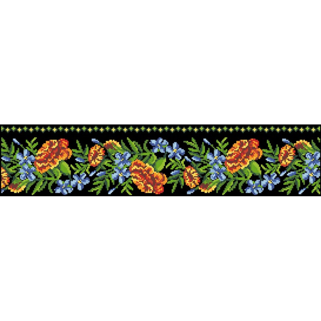 Заготовка для вишивки жіночої спідниці Мамині чорнобривці призначена для часткової зашивки бісером або нитками. Схема надрукована на шовковій тканині чорного кольору екологічно чистими стійкими фарбами, що не змиваються після прання. Відрізи розкроєні з урахуванням запасів для зручного вишивання та подальшого пошиття виробу.