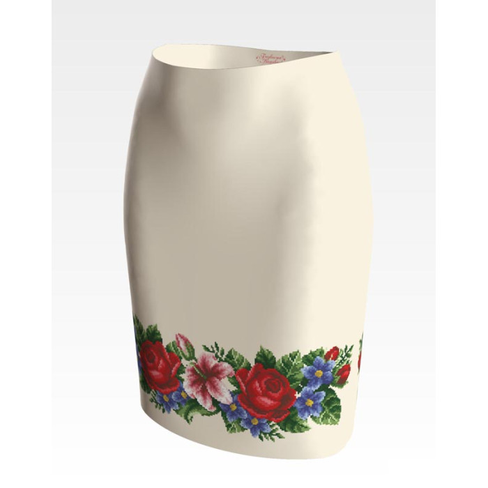 Заготовка для вишивки жіночої спідниці Лілеї, троянди, незабудки призначена для часткової зашивки бісером або нитками. Схема надрукована на атлас-котоні бежевого кольору екологічно чистими стійкими фарбами, що не змиваються після прання. Відрізи розкроєні з урахуванням запасів для зручного вишивання та подальшого пошиття виробу.