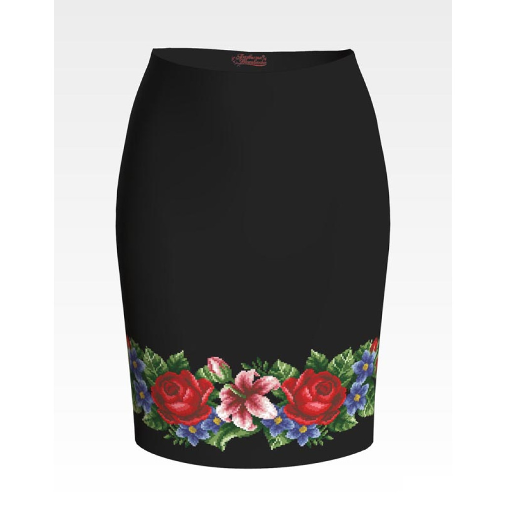 СЖ361шЧнннн Барвиста вишиванка Заготовка для вишивки - Спідниця жіноча Лілеї, троянди, незабудки р.42-54 шовк, чорний