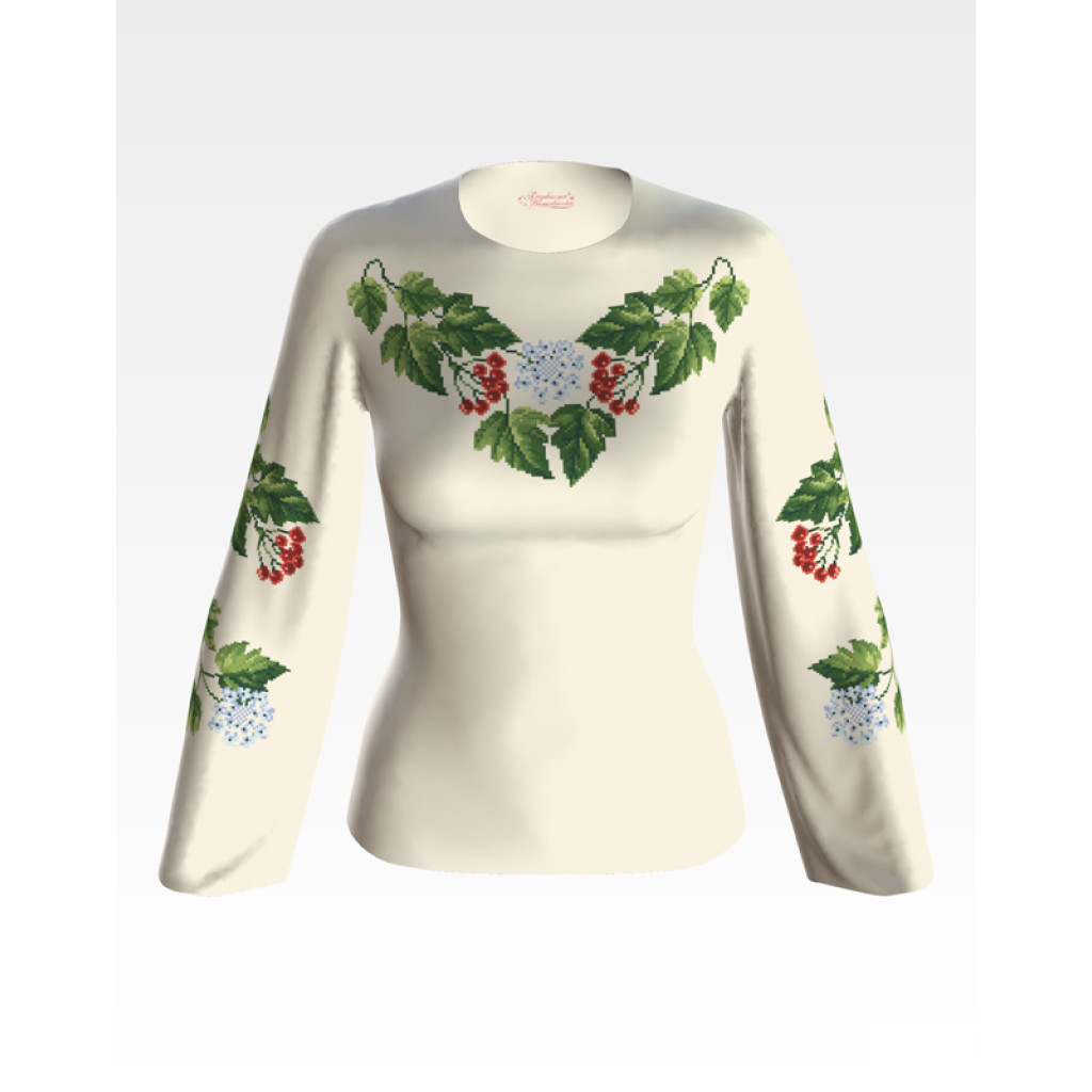 БЖ016кМнннн Вишиванка жіноча Цвіт калини, атлас-котон, бежевий, р. 42-54. Барвиста вишиванка. Заготовка для вишивання бісером або нитками.