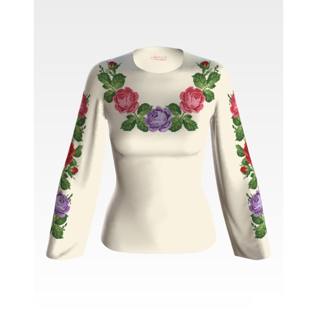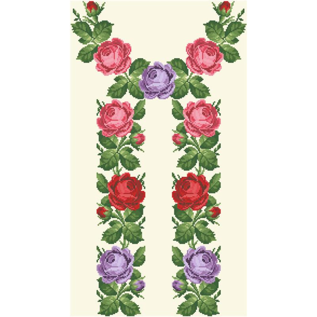 БЖ027кМнннн Вишиванка жіноча Романтичні троянди, атлас-котон, бежевий, р. 42-54. Барвиста вишиванка. Заготовка для вишивання бісером або нитками.