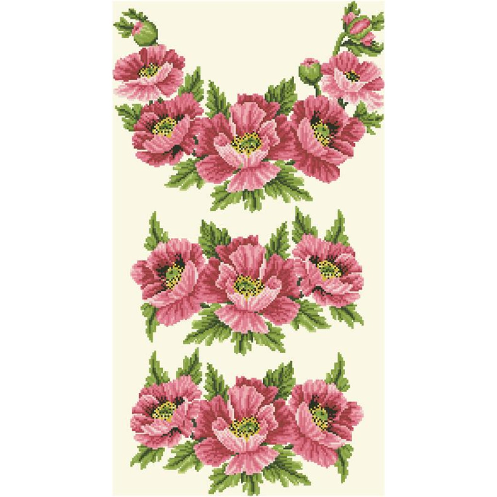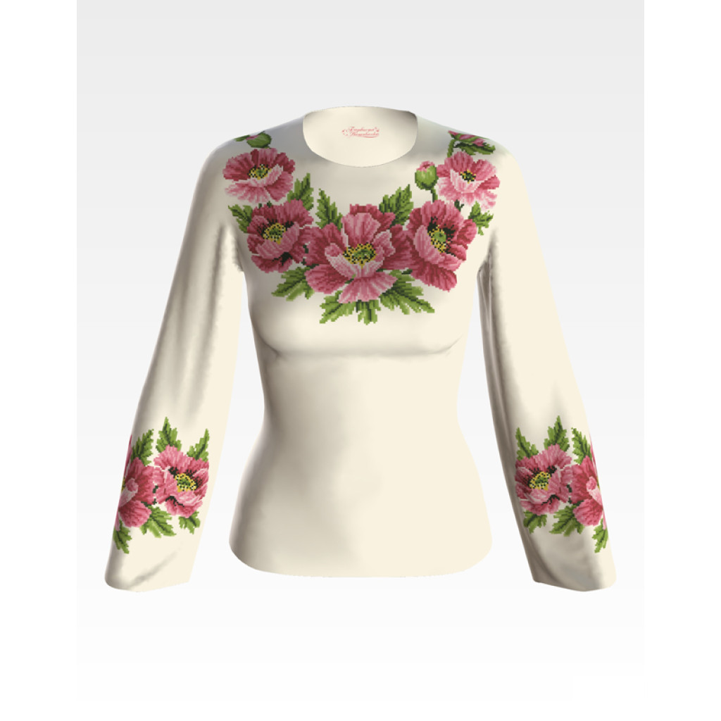 БЖ042кМнннн Вишиванка жіноча Маки рожеві, атлас-котон, бежевий, р. 42-54. Барвиста вишиванка. Заготовка для вишивання бісером або нитками.