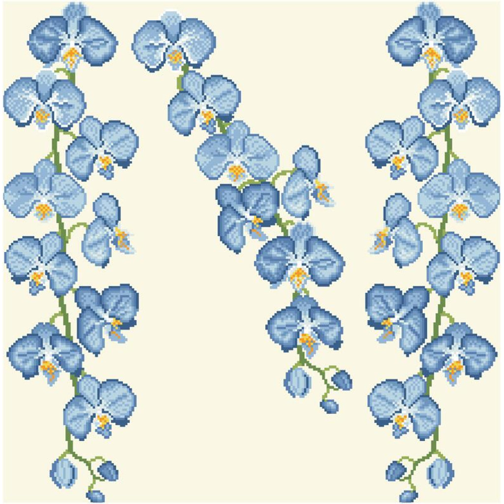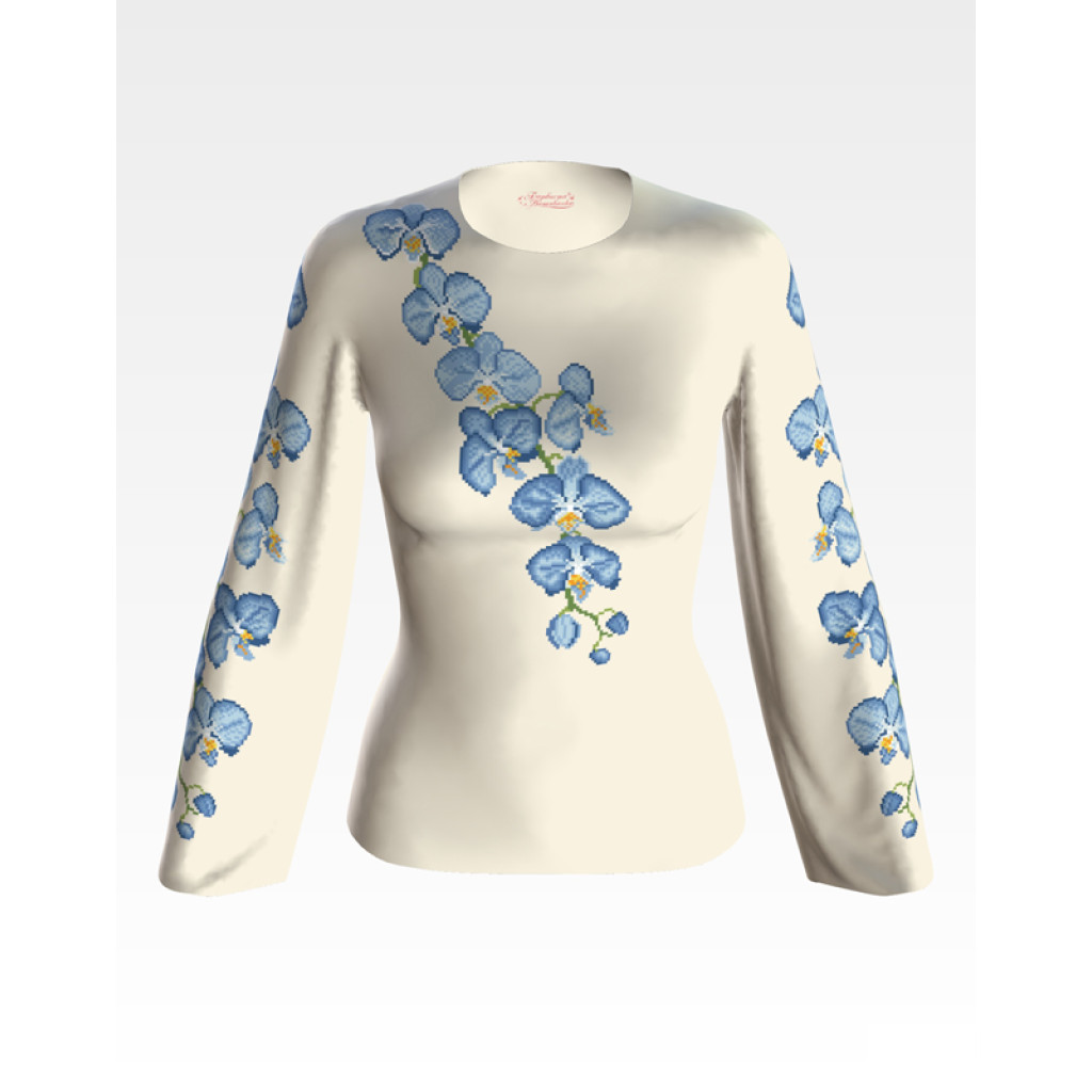 БЖ085кМнннн Вишиванка жіноча Блакитні орхідеї, атлас-котон, бежевий, р. 42-54. Барвиста вишиванка. Заготовка для вишивання бісером або нитками.