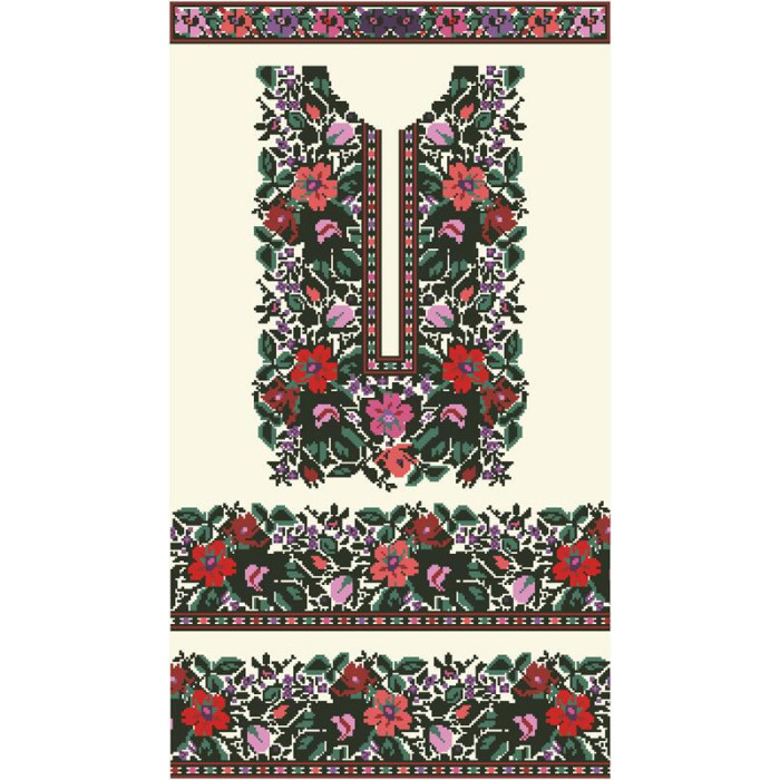 УВАГА! Вказані розмірні параметри заготовки можуть містити незначні погрішності в декілька сантиметрів. Залежно від кольору та виду тканини, допускається погіршення чіткості нанесеної схеми та випадки заміни одного кольору іншим (у такому випадку в інструкції зазначається відповідність кольору конкретній позначці). Ми наполегливо рекомендуємо перед вишивкою заготовки звернутися до кравчині - для зняття мірок, помітку країв вишивки та уточнення деталей пошиття виробу стануть вам у нагоді, як під час вишивки, так і під час пошиття виробу.