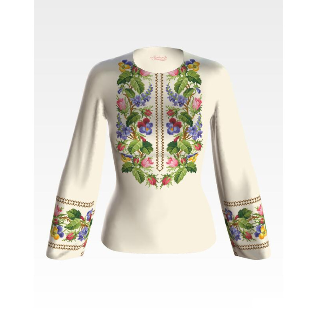 БЖ117кМнннн Вишиванка жіноча Братки, атлас-котон, бежевий, р. 42-54. Барвиста вишиванка. Заготовка для вишивання бісером або нитками.