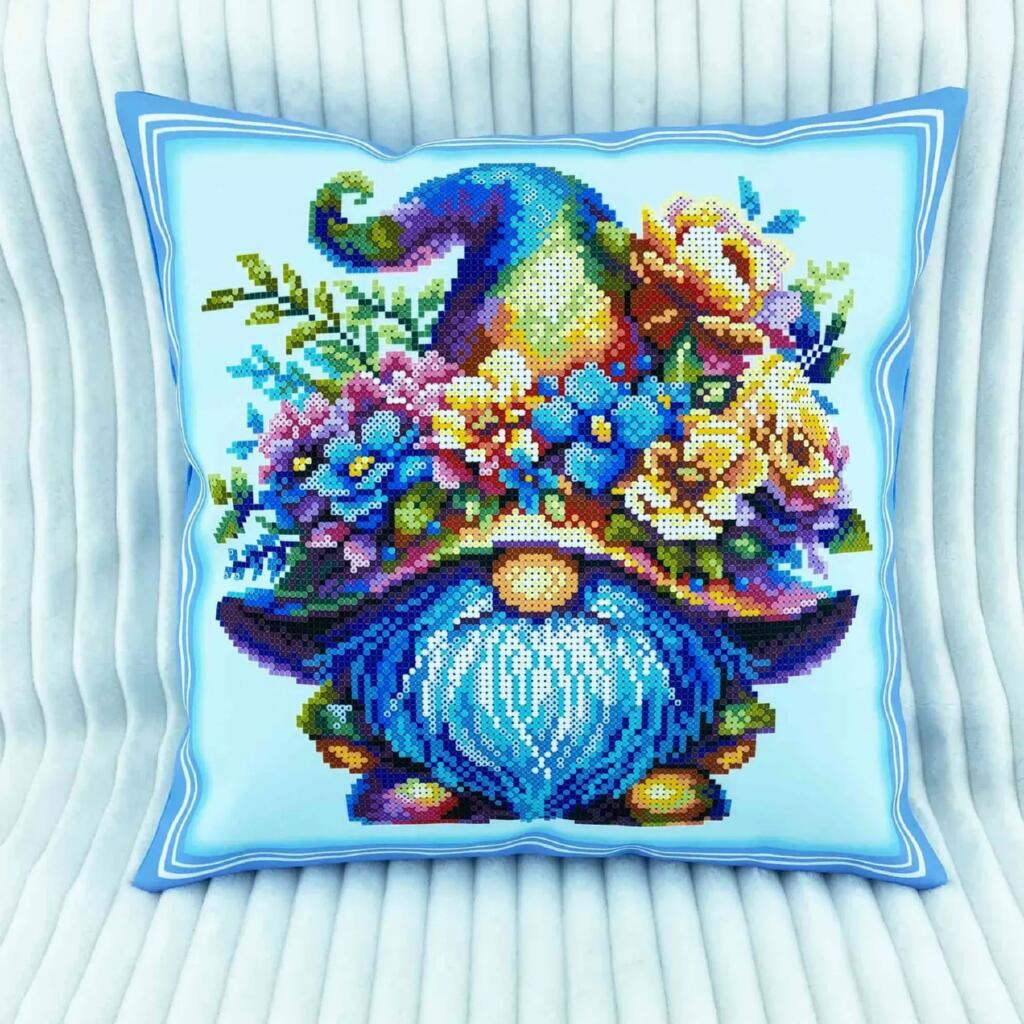 НД_246 Virena Заготовка для вишивки бісером - Наволочка декоративна Гном з квітами 31x31 см, габардин