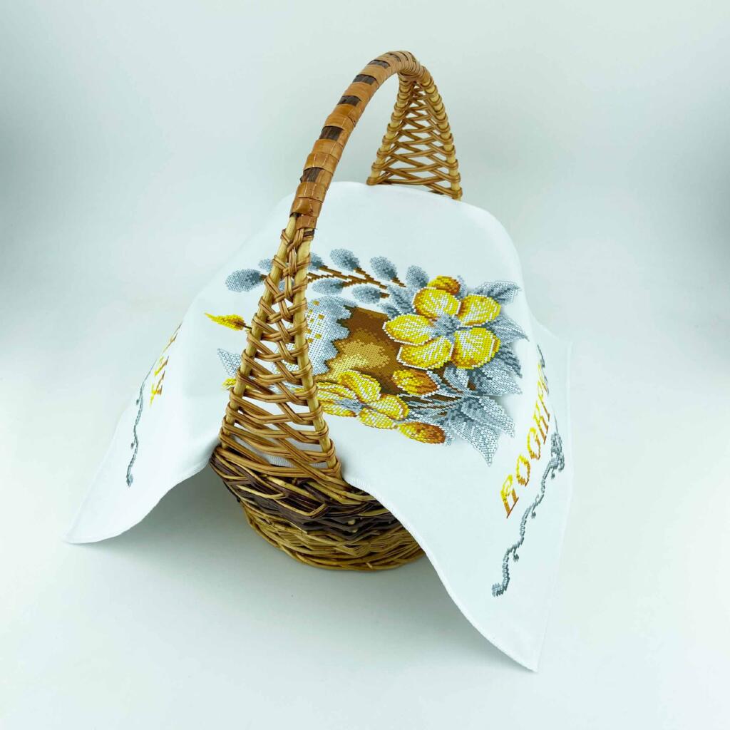 Заготовка Virena призначена для вишивання бісером великоднього рушника на кошик. Основа з габардину проклеєна флізеліном, а зрізи охайно обметані, тому виріб зручний у роботі та добре тримає форму.