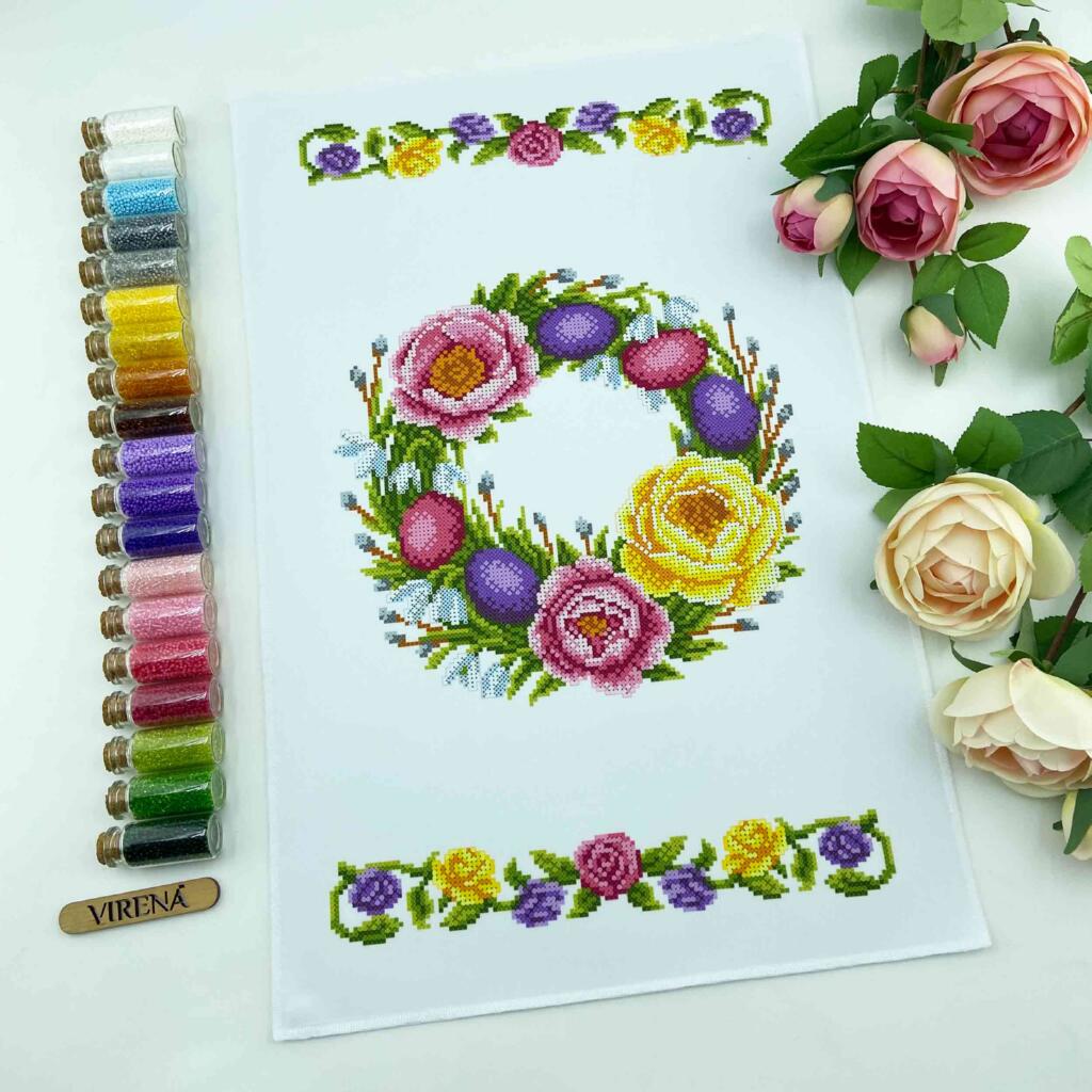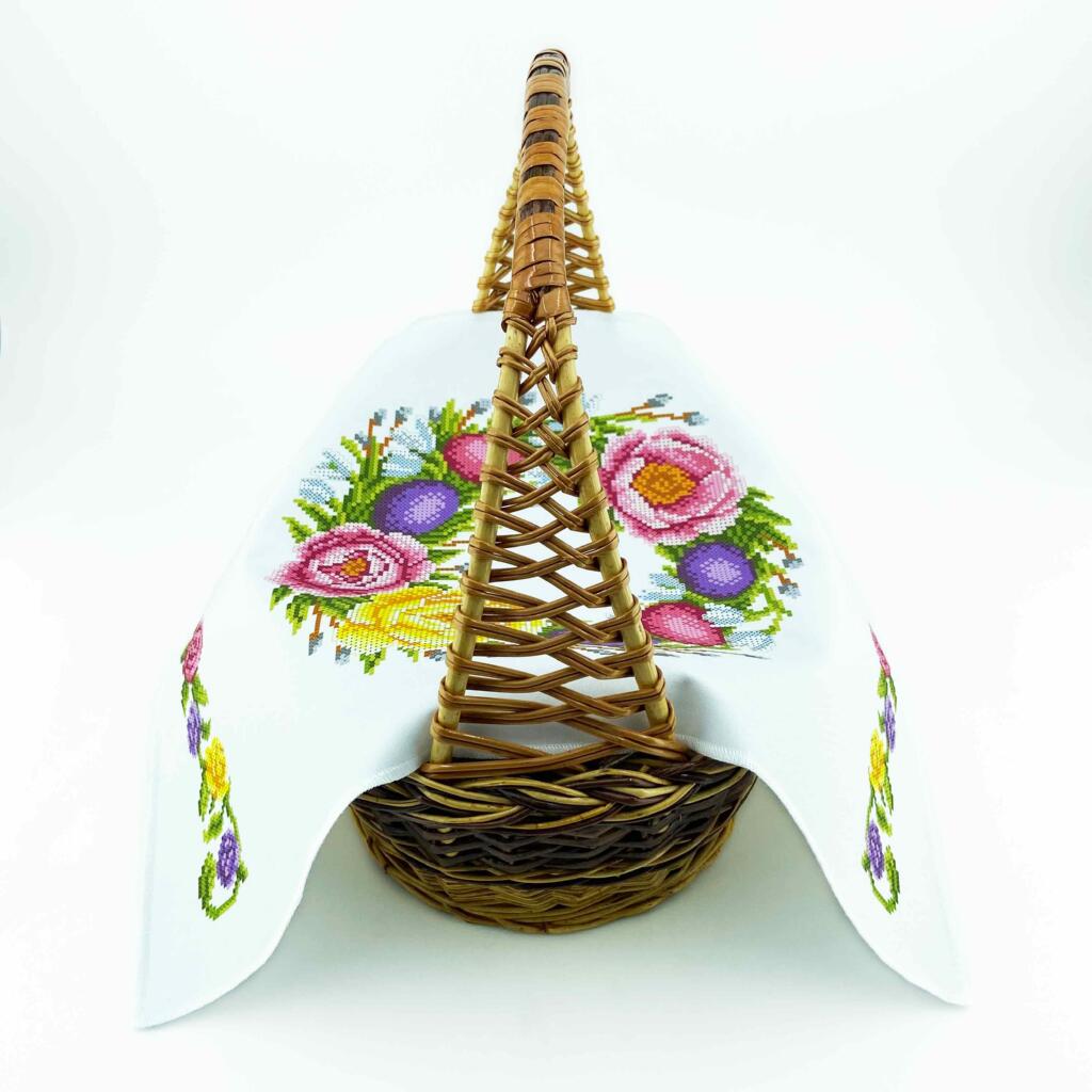 Заготовка Virena призначена для вишивання бісером великоднього рушника на кошик. Основа з габардину проклеєна флізеліном, а зрізи охайно обметані, тому виріб зручний у роботі та добре тримає форму.