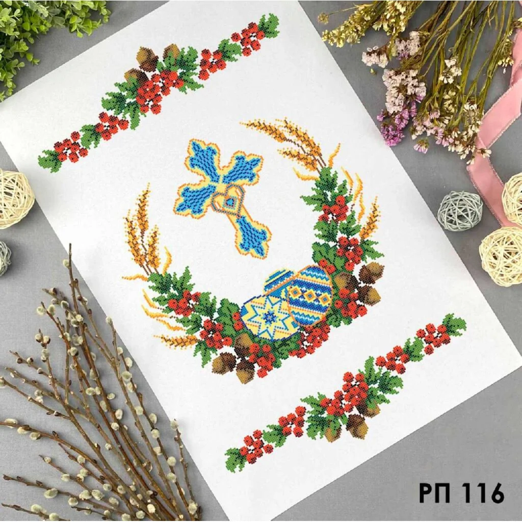 РП-116г Рушник Великодній на габардині. Кольорова. Заготовка для вишивки бісером або нитками. Великдень - це найсвітліше свято для християн усього світу. І готуватися до цього великого дня можна протягом усього року. Особливо, святкове прикрашання буде важко уявити без рушника.