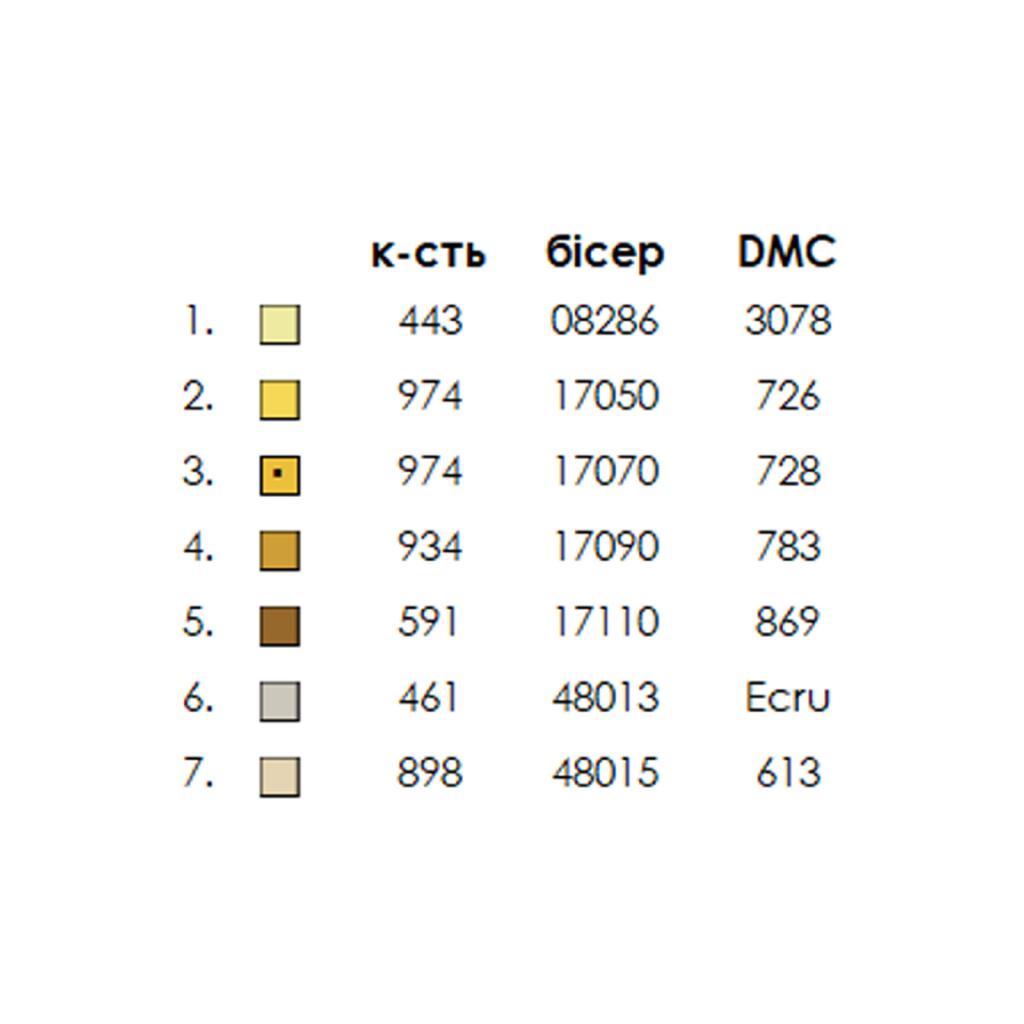 • титулка-ключ із рекомендованими кольорами бісеру Preciosa та ниток муліне DMC, а також їх кількістю