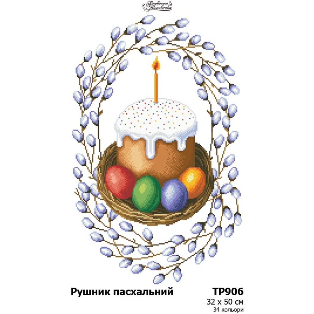 ТР906дн3250 Барвиста вишиванка Заготовка для вишивки - Великодній рушник 32x50 см, домоткане полотно