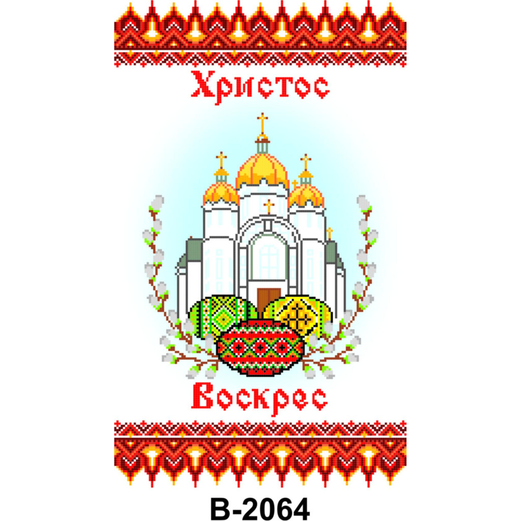 Заготовка для вишивки бісеромВ-2064 призначена для створення декоративного пасхального рушника. Малюнок нанесено на габардин — міцну тканину, що проклеєна флізеліном для зручної та охайної вишивки. На схемі чітко позначено кольори й кількість бісеринок. Орнамент і тематика підібрані спеціально для великоднього оформлення — із традиційними елементами святкової символіки.
