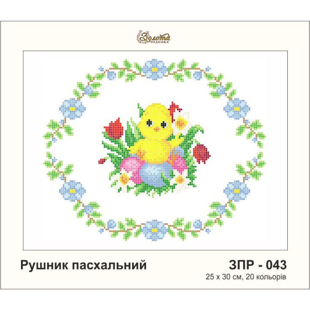 Рушник пасхальний формат А-4 від ТМ Золота Підкова це заготовка для вишивки бісером на габардині, створена спеціально для оформлення великоднього кошика та святкового декору оселі. Чіткий друк із символами під бісер допомагає легко орієнтуватися в схемі та отримати яскравий, виразний візерунок навіть при невеликому досвіді у вишиванні.