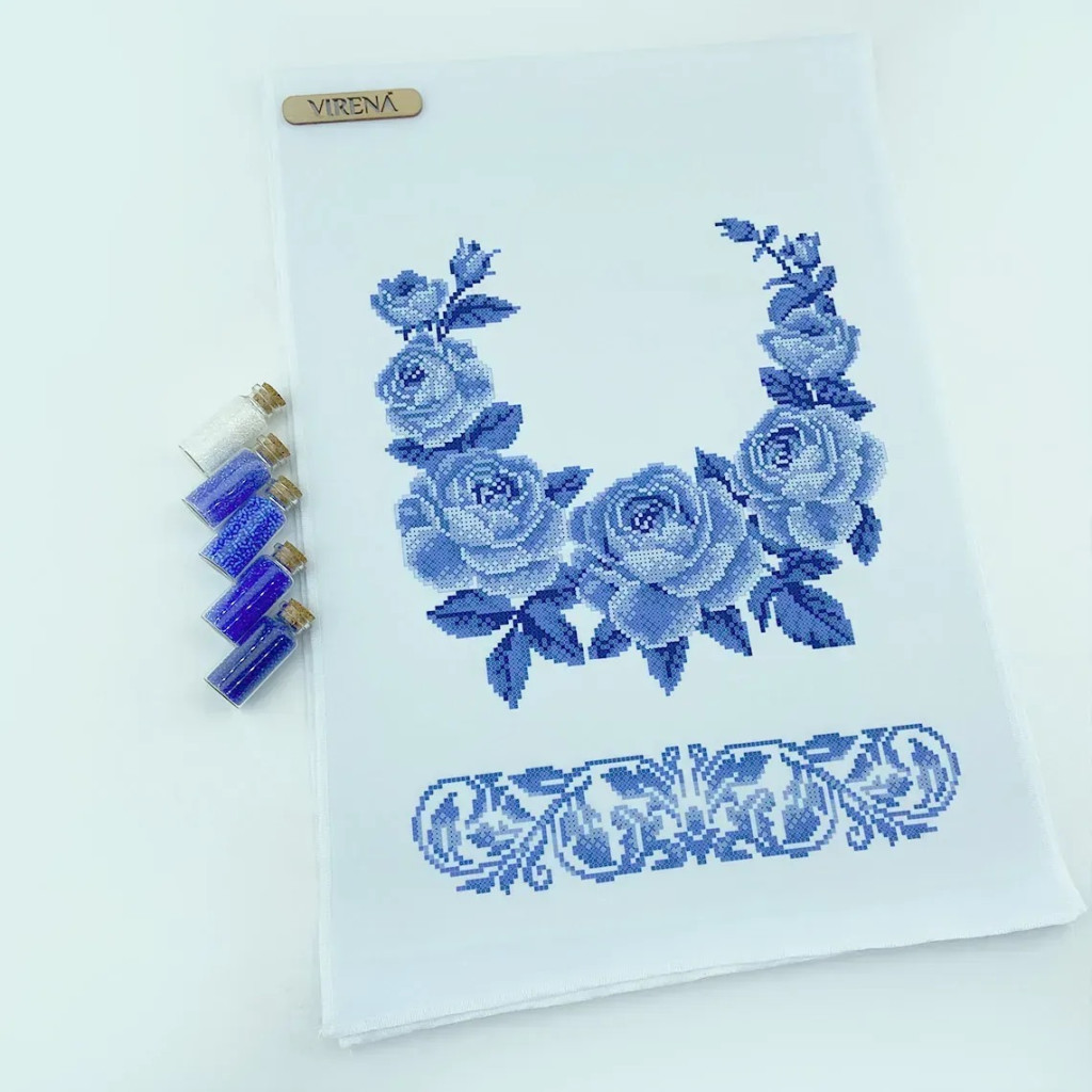 Заготовка для вишивки бісером дозволяє створити традиційний весільний рушник власноруч. Чітко надрукована схема допомагає зручно орієнтуватися під час роботи та акуратно розміщувати бісер відповідно до малюнка.