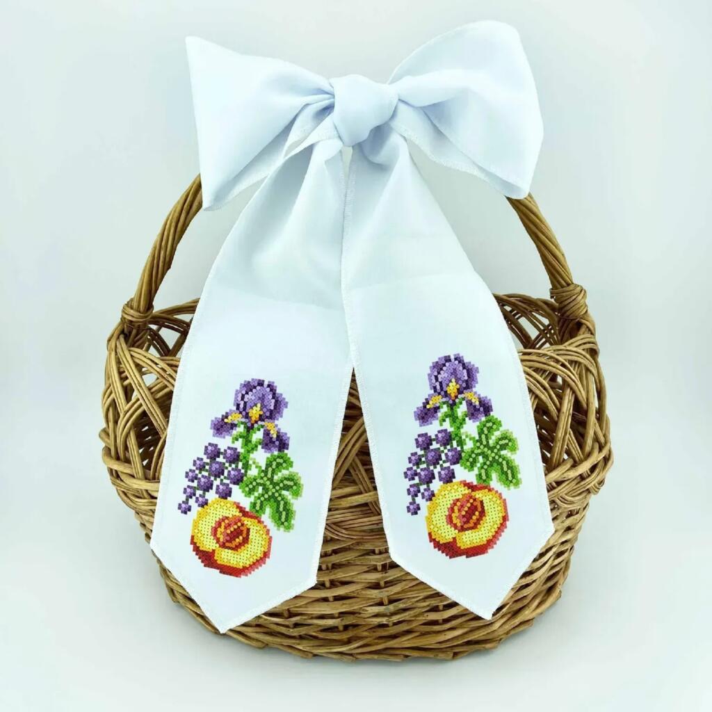 Заготовка для вишивки бісером дозволяє створити декоративний бант до свята Спаса власноруч. Чітко надрукована схема допомагає легко орієнтуватися під час роботи та акуратно розміщувати бісер відповідно до малюнка.