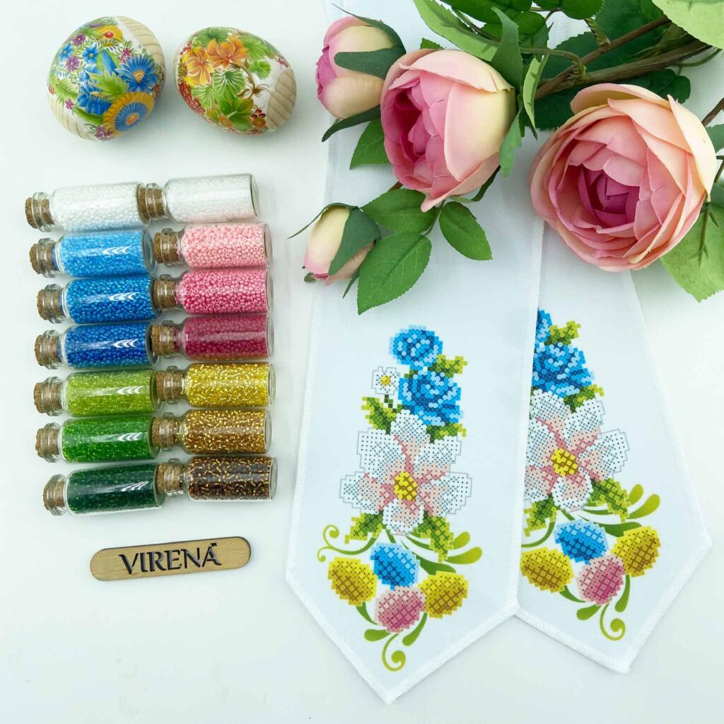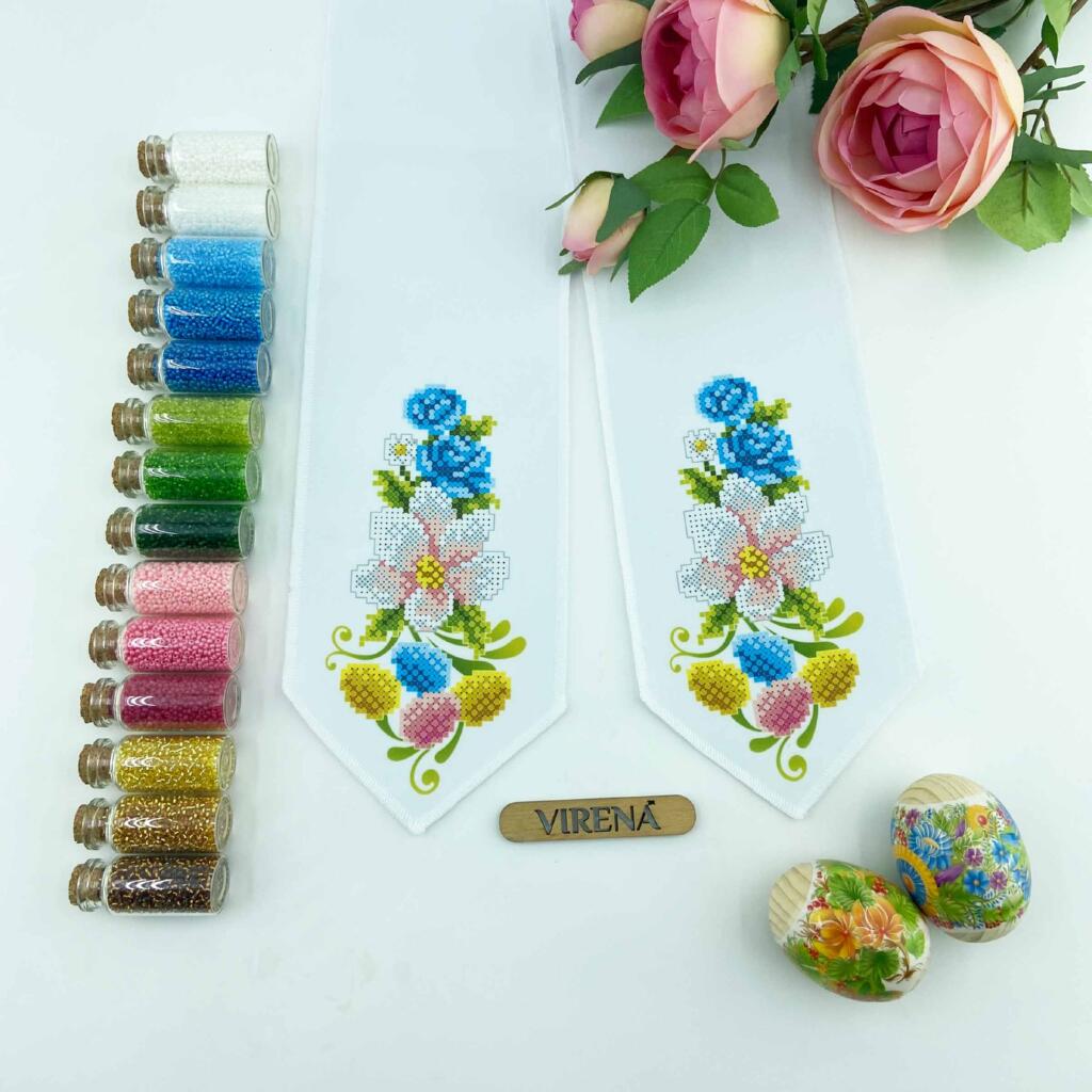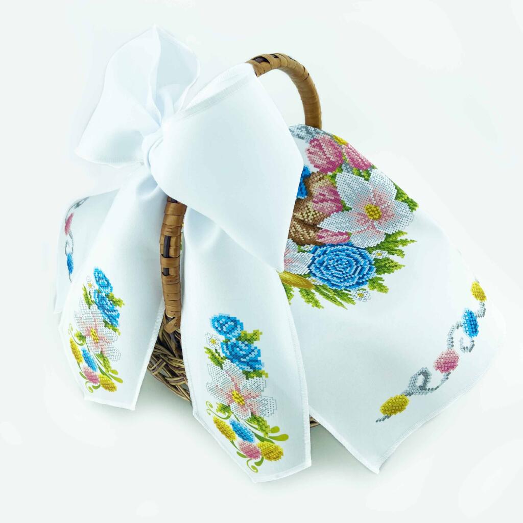 Заготовка Virena призначена для вишивання бісером пасхального банта на кошик. Основа з габардину проклеєна флізеліном у місцях вишивання, а зрізи акуратно обметані, тому виріб зручний у роботі та добре тримає форму.