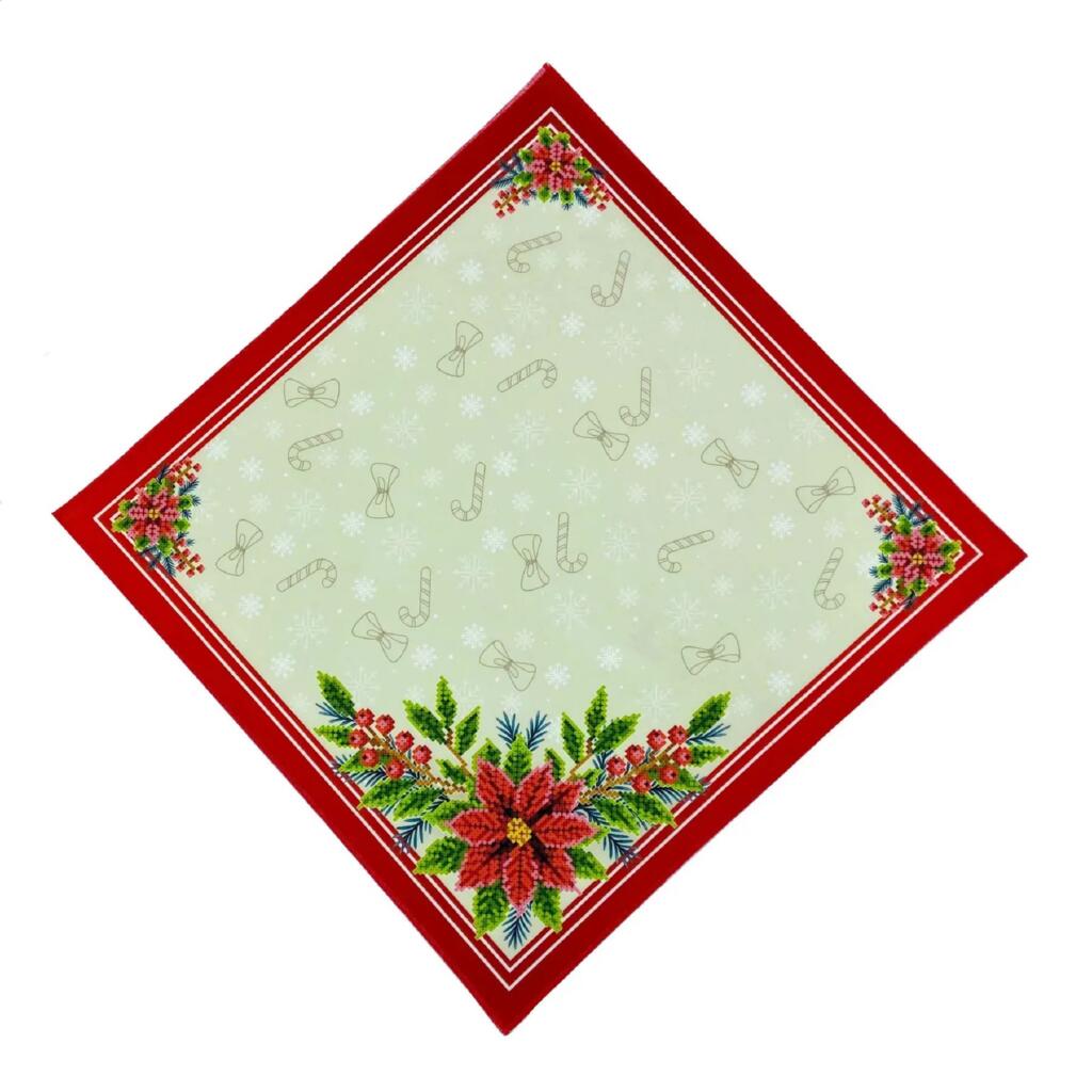 СПВ_204 Virena Заготовка для вишивки бісером - Серветка різдвяна з різдвяними квітами 40x40 см (схема на габардині)