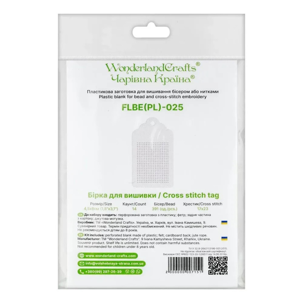 FLBE(PL)-025 Wonderland Сrafts. Заготовка для вишивки на пластиковій основі - Бірка, 4,5*8 см