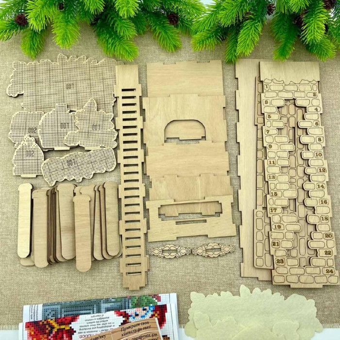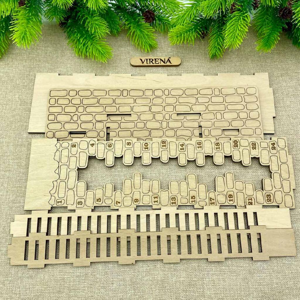 Адвент календар складається з комплекту фігурок з дерева (42 деталі).