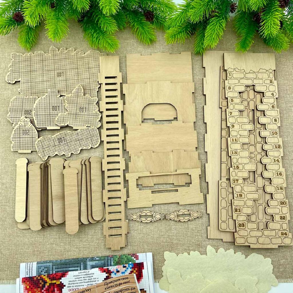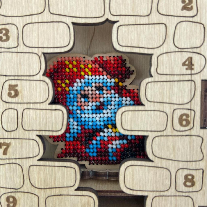 Заготовка календаря складається з основної конструкції до якої кріпляться вишиті елементи. Також в комплект входять 24 дерев'яні пластини до яких додається листок з рекомендованими завданнями на кожен день.