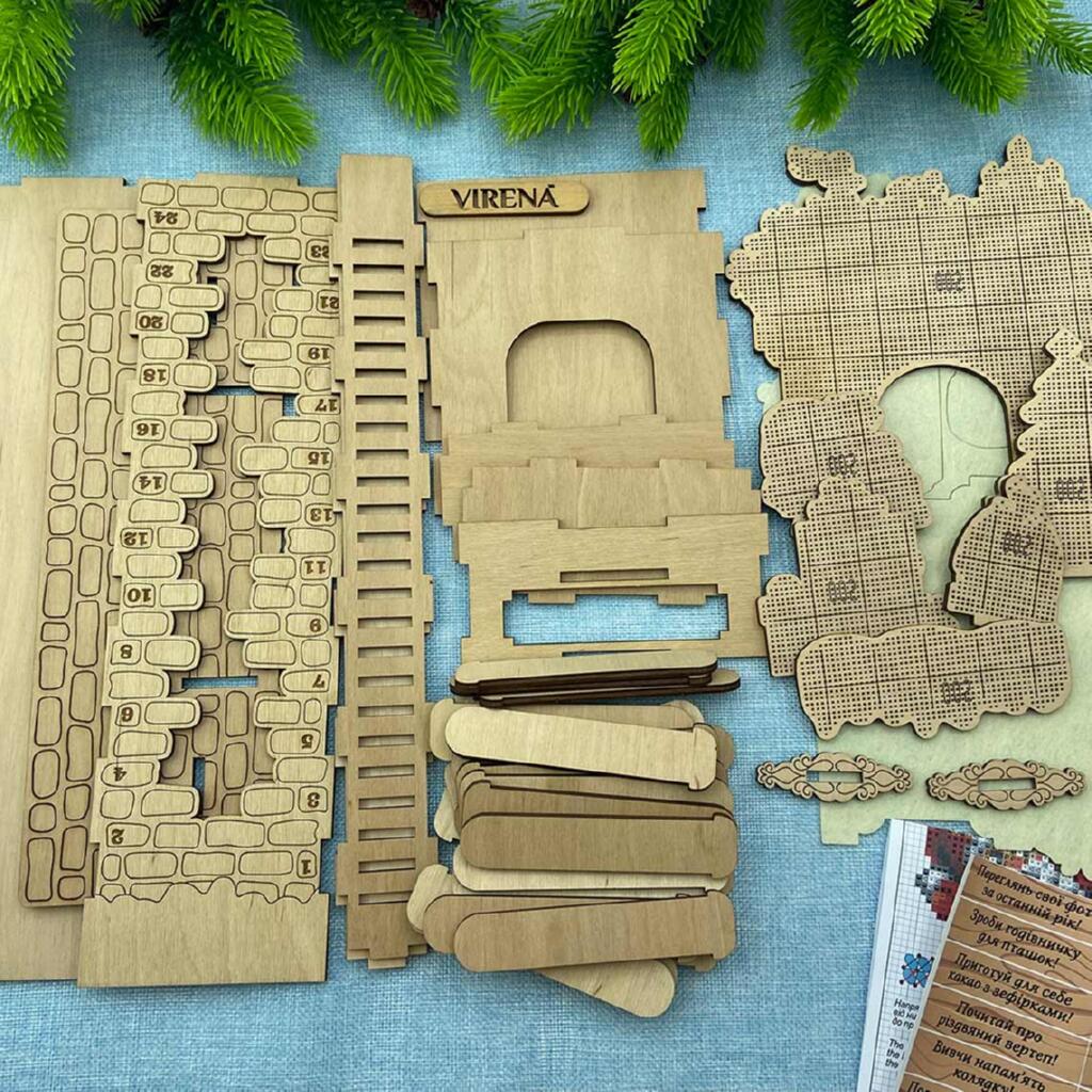 Заготовка календаря складається з основної конструкції до якої кріпляться вишиті елементи. Також в комплект входять 24 дерев'яні пластини до яких додається листок з рекомендованими завданнями на кожен день.