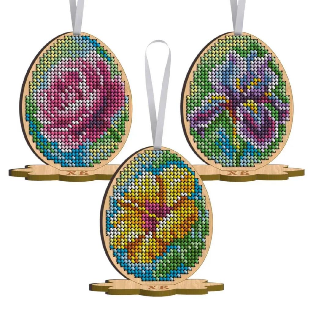 НІП_402 Virena Дерев'яна заготовка для вишивки бісером - Великодні міні-іграшки 6,6смx8,6 см (3 шт)