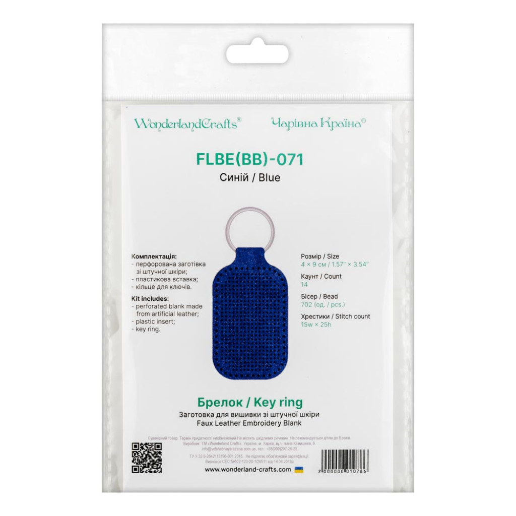 FLBE(BB)-071 Wonderland Crafts Заготовка для вишивки - Брелок 4x9 см (синій, штучна шкіра)