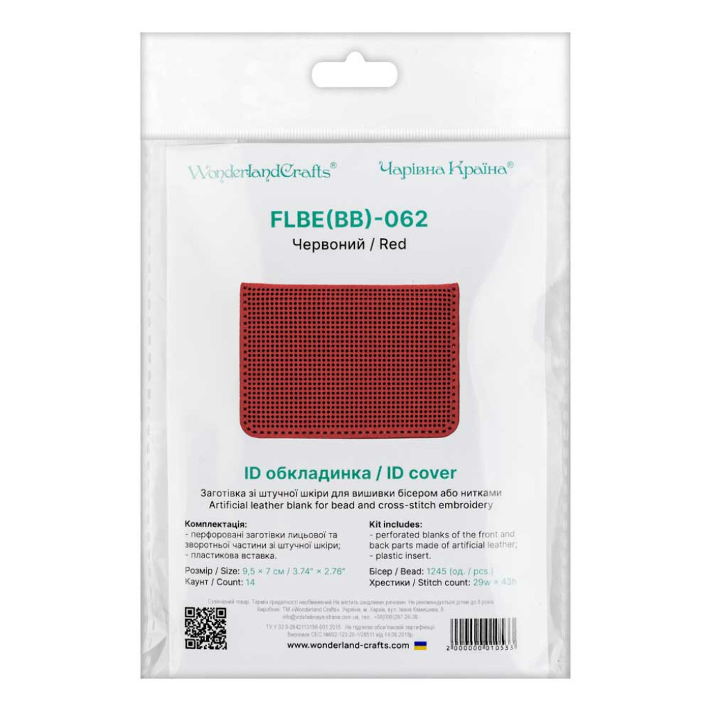 FLBE(BB)-062 Wonderland Crafts Заготовка для вишивки - Обкладинка на ID паспорт 7х9,5 см (червоний, штучна шкіра)