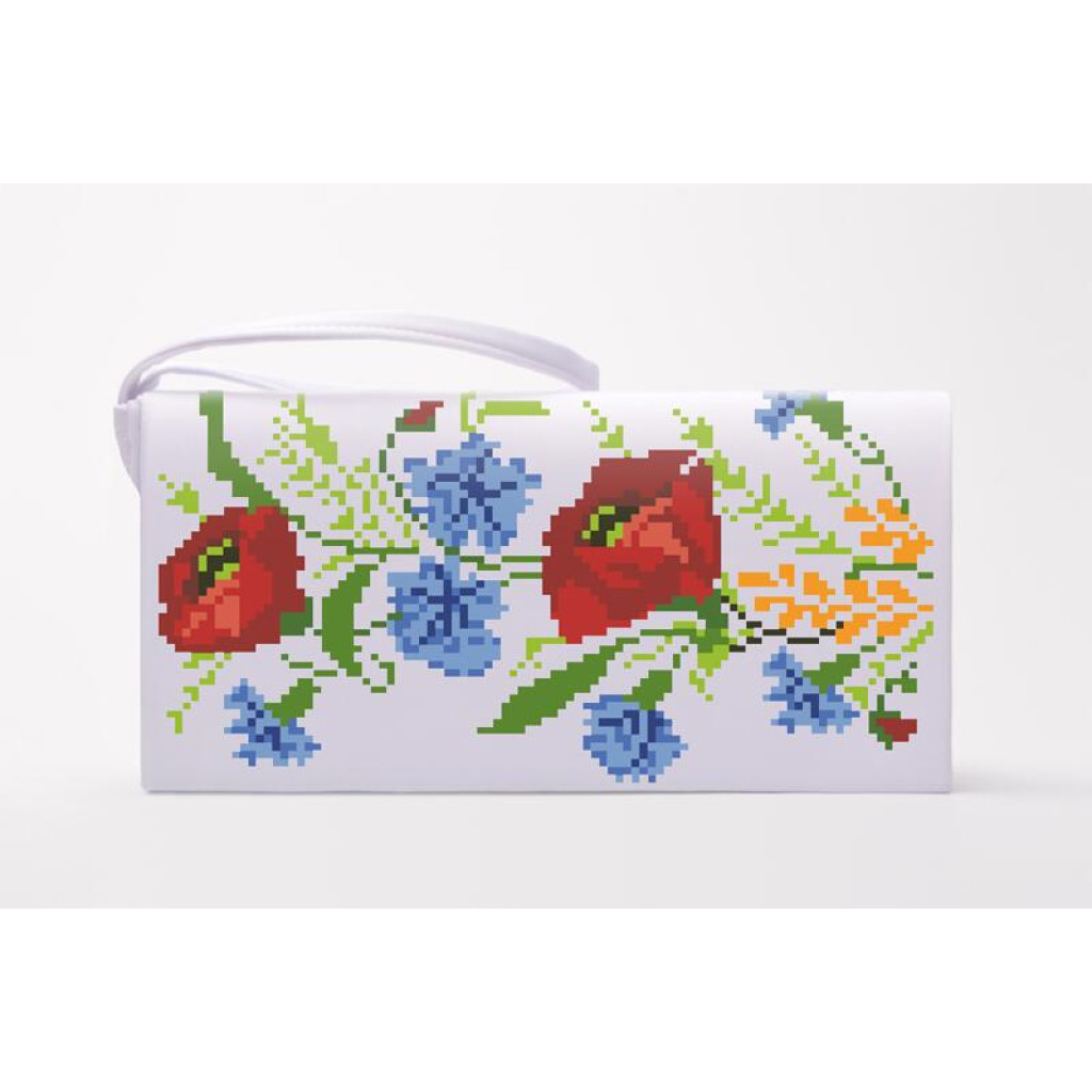КЛ024шБ1301k Барвиста вишиванка Набір для вишивки бісером - Клатч Польові квіти 21x13 см шовк, білий