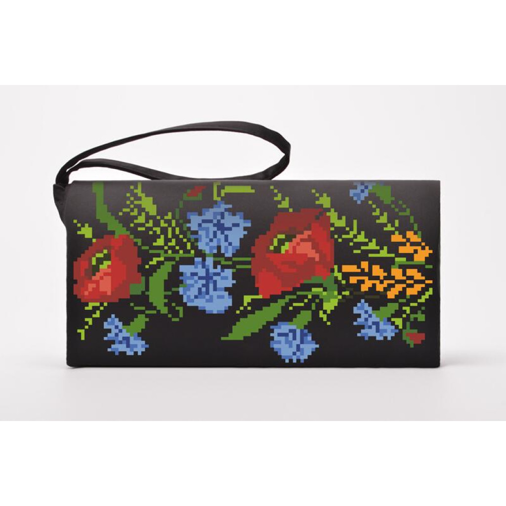 Набір для вишивки бісером пошитого клатча Польові квітивід Барвиста вишиванка призначений для часткової зашивки бісером по надрукованій схемі. Малюнок нанесений на шовкову тканину чорного кольору стійкими екологічними фарбами, що не змиваються під час дбайливого прання. Клатч уже має готову форму, а використання чеського бісеру Preciosa №10 дозволяє створити акуратну фактуру вишивки бісером.