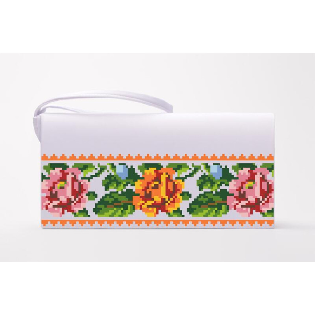 КЛ030пБ1301k Барвиста вишиванка Набір для вишивки бісером - Клатч Вишукана. Буковинська 21x13 см габардин, білий