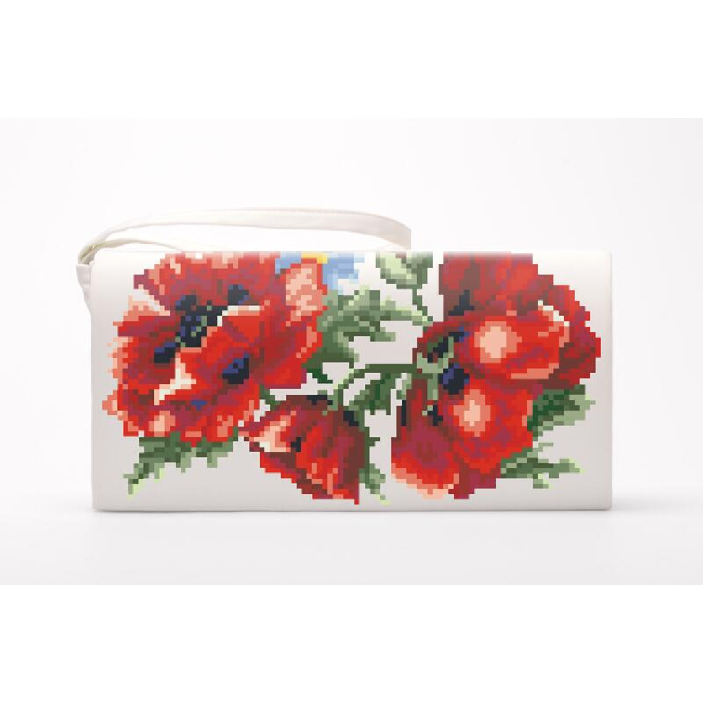Набір для вишивки бісером пошитого клатча Маки червонівід Барвиста вишиванка призначений для часткової зашивки бісером по надрукованій схемі. Малюнок нанесений на шовкову тканину бежевого кольору стійкими екологічними фарбами, що не змиваються під час дбайливого прання. Клатч уже має готову форму, а використання чеського бісеру Preciosa №10 дозволяє створити акуратну фактуру вишивки бісером.