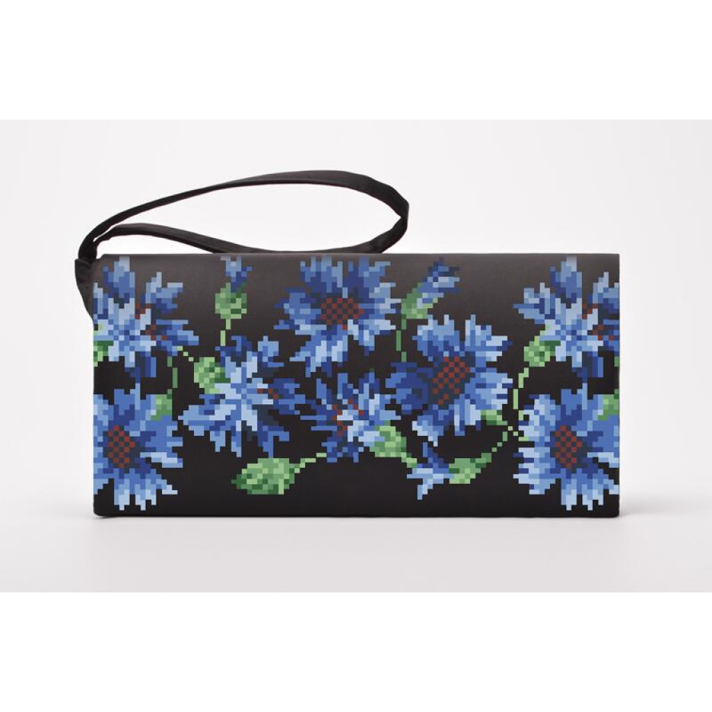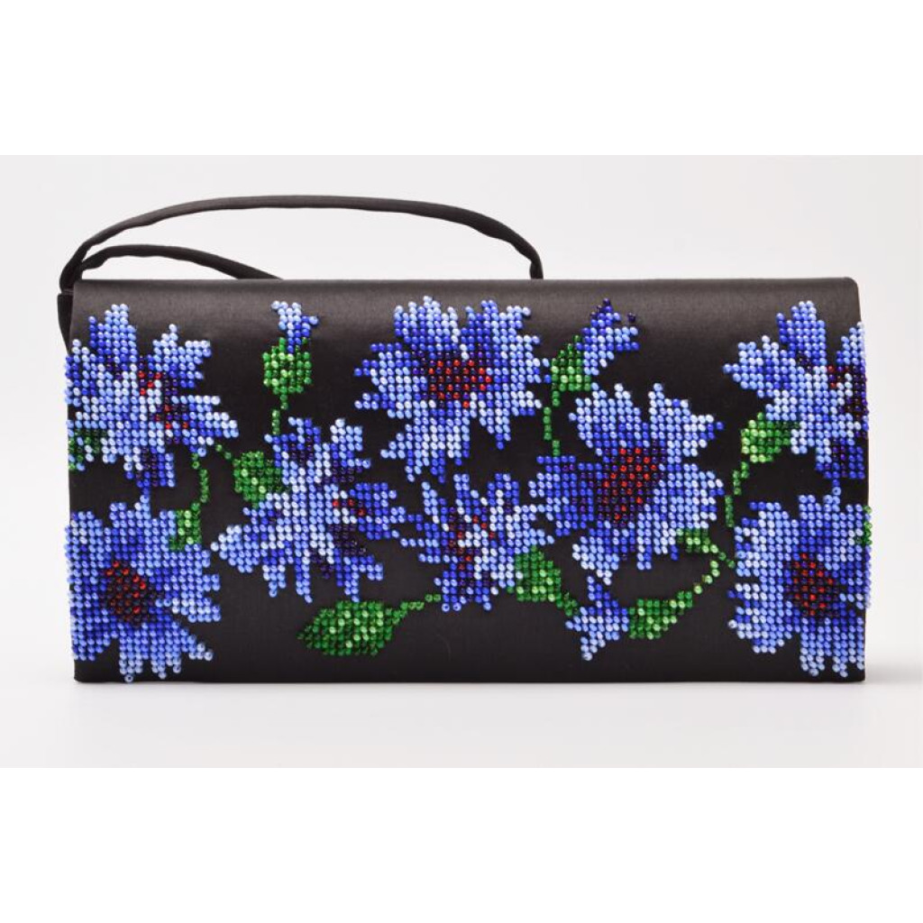КЛ051шЧ1301k Барвиста вишиванка Набір для вишивки бісером - Клатч Волошки 21x13 см шовк, чорний