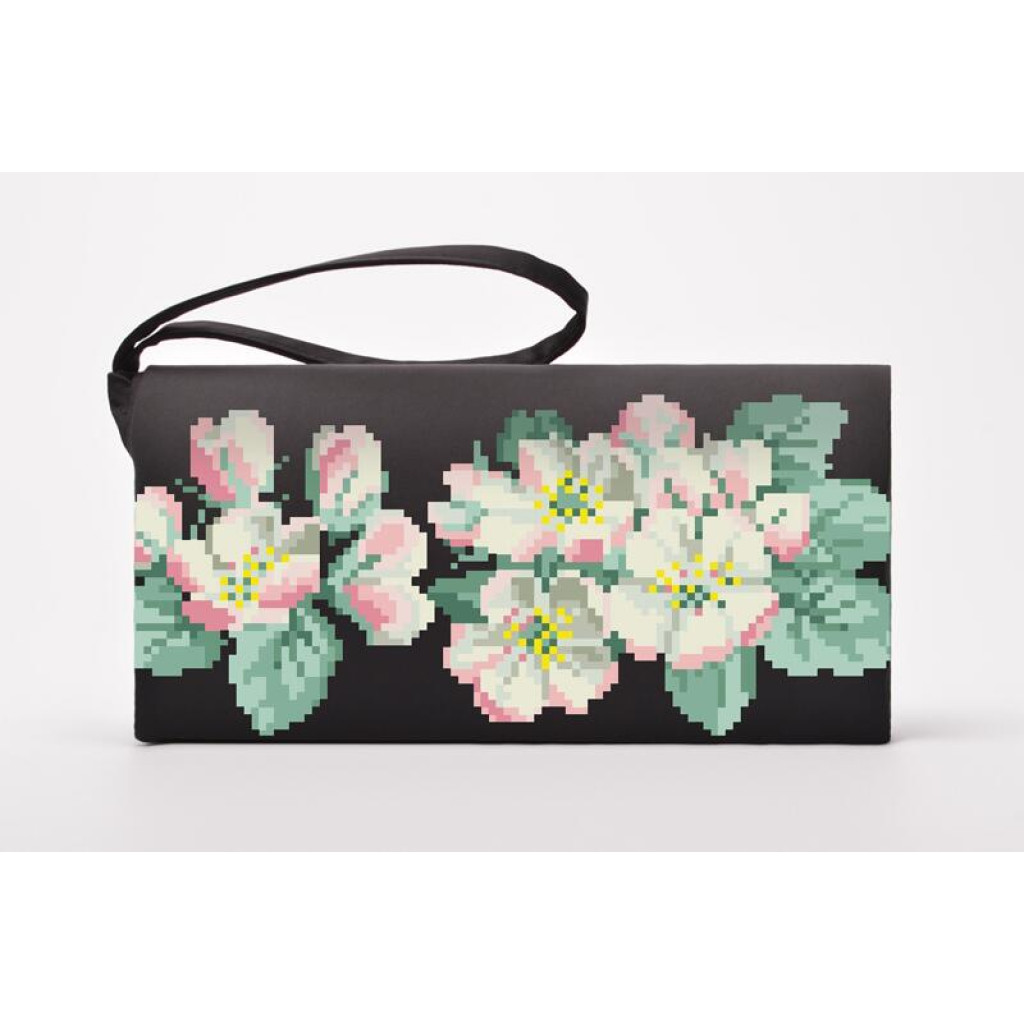 Набір для вишивки бісером пошитого клатча Яблуневий цвіт від Барвиста вишиванка призначений для часткової зашивки бісером по надрукованій схемі. Малюнок нанесений на лляну тканину чорного кольору стійкими екологічними фарбами, що не змиваються під час дбайливого прання. Клатч уже має готову форму, а використання чеського бісеру Preciosa №10 дозволяє створити акуратну фактуру вишивки бісером.