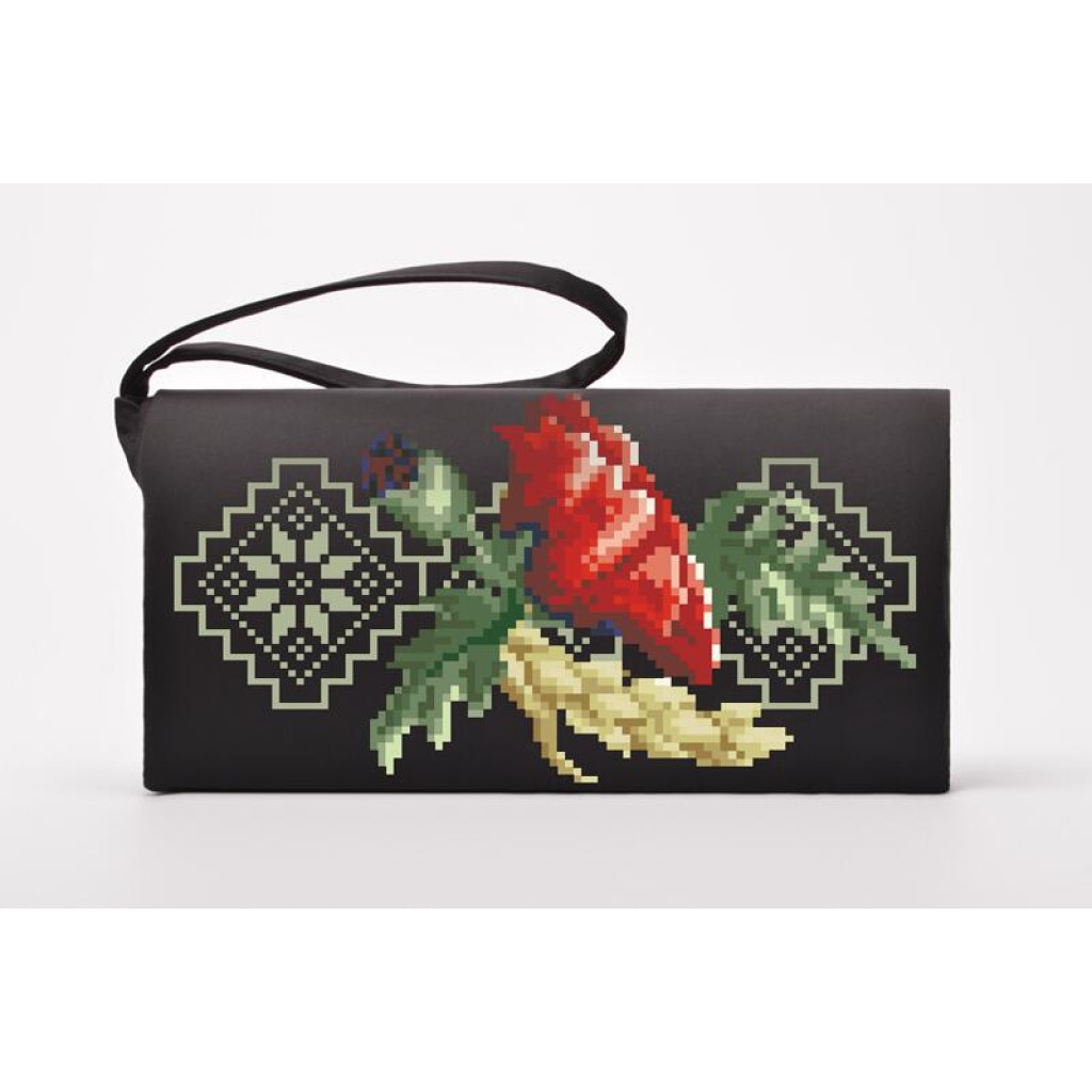 КЛ086дЧ1301k Барвиста вишиванка Набір для вишивки бісером - Клатч Маковий розмай 21x13 см домоткане полотно, чорний