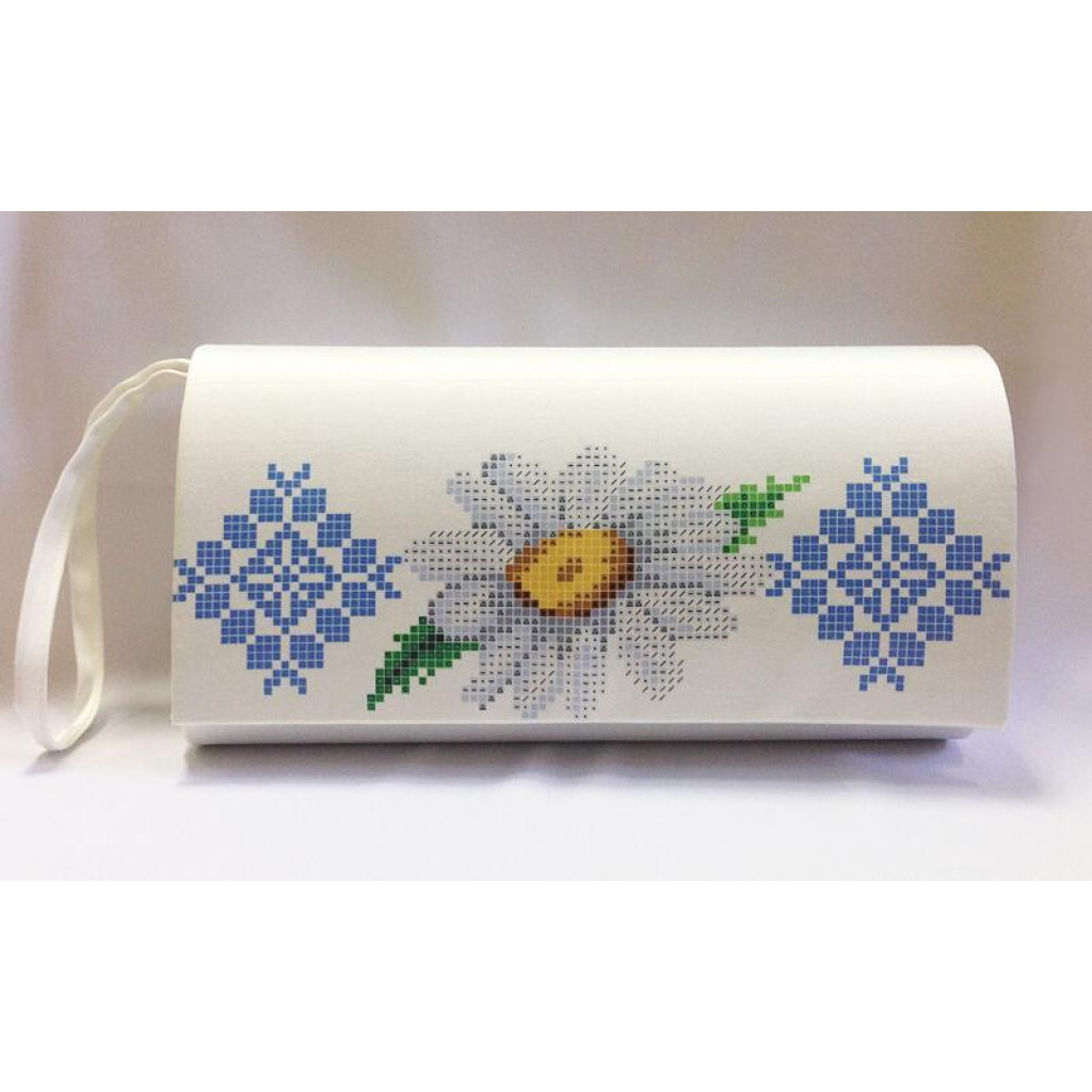 Набір для вишивки бісером пошитого клатча Ніжні ромашки від Барвиста вишиванка призначений для часткової зашивки бісером по надрукованій схемі. Малюнок нанесений на атласну тканину бежевого кольору стійкими екологічними фарбами, що не змиваються під час дбайливого прання. Клатч уже має готову форму, а використання чеського бісеру Preciosa №10 дозволяє створити акуратну фактуру вишивки бісером.