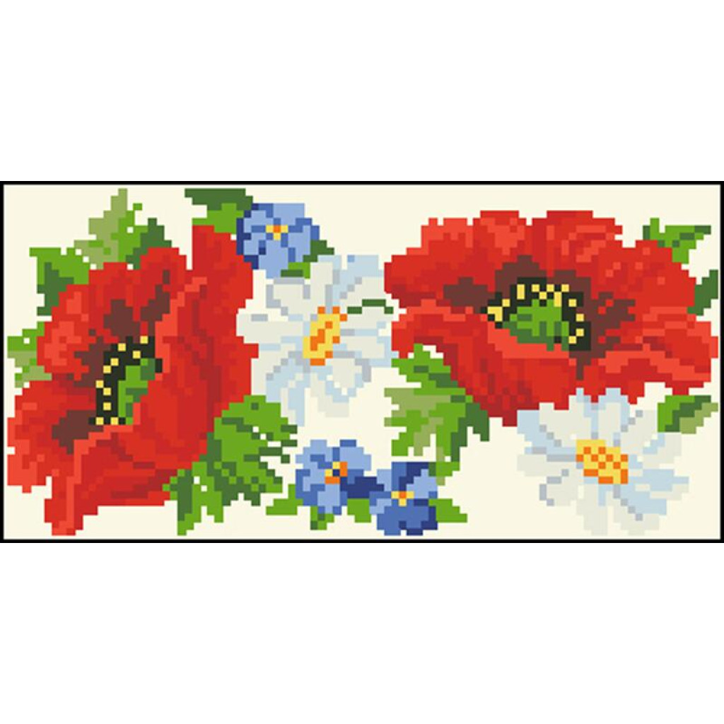 КЛ102шМ1301k Барвиста вишиванка Набір для вишивки бісером - Клатч Маки, ромашки, незабудки 21x13 см шовк, бежевий