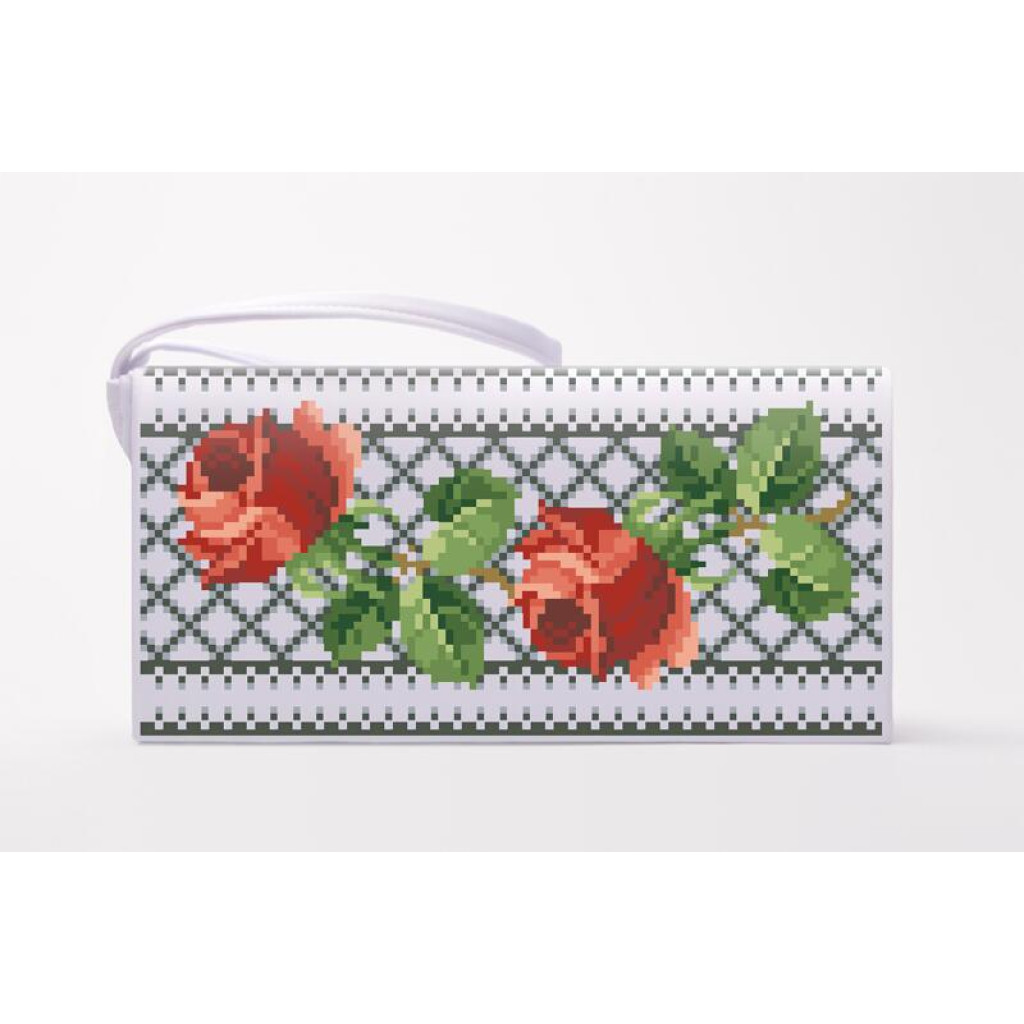 КЛ119дБ1301k Барвиста вишиванка Набір для вишивки бісером - Клатч Трояндове мереживо 21x13 см домоткане полотно, білий