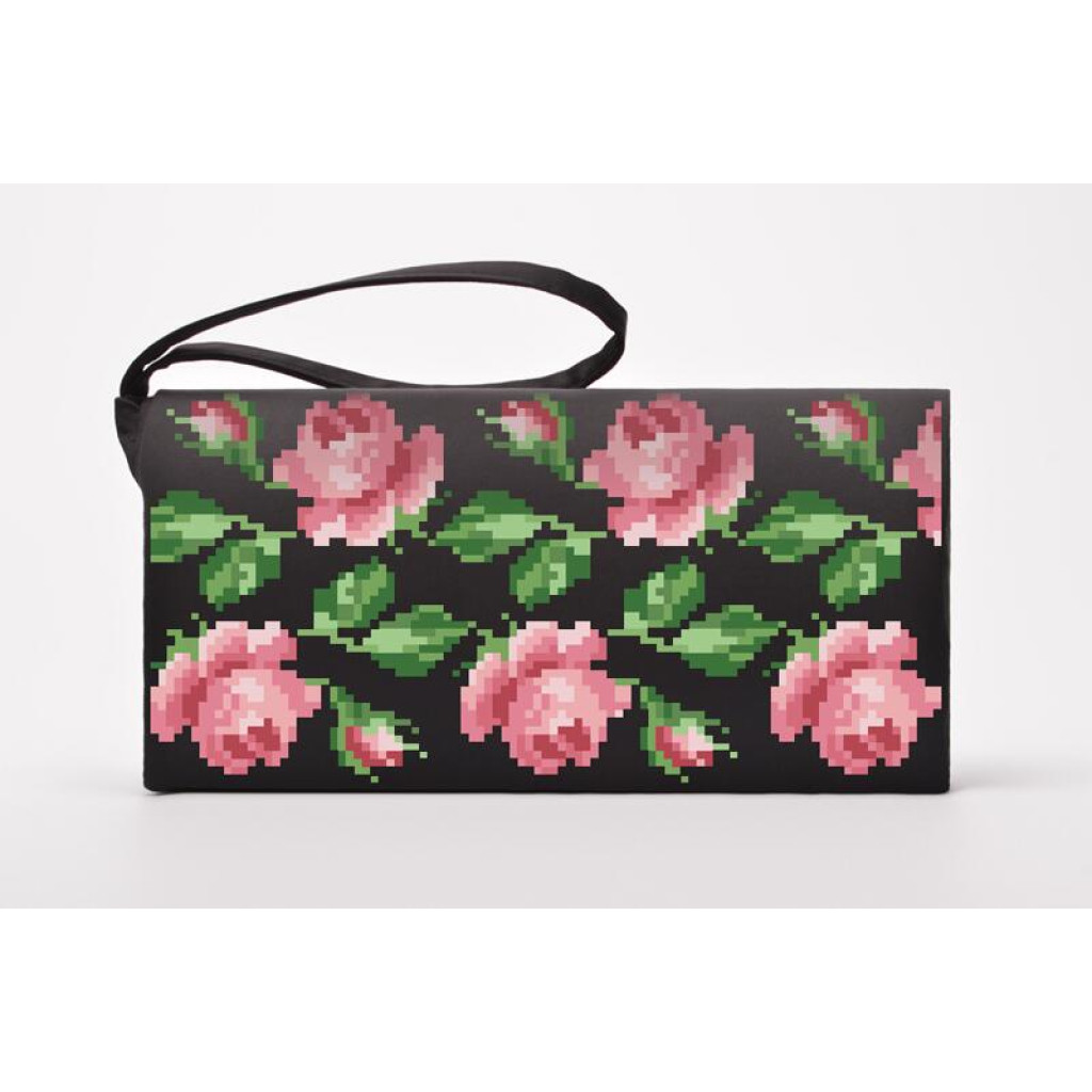 КЛ168кЧ1301k Барвиста вишиванка Набір для вишивки бісером - Клатч Ніжні троянди 21x13 см атлас, чорний