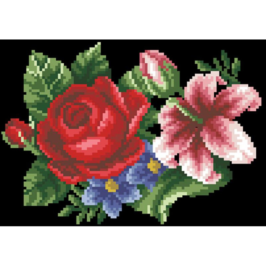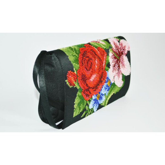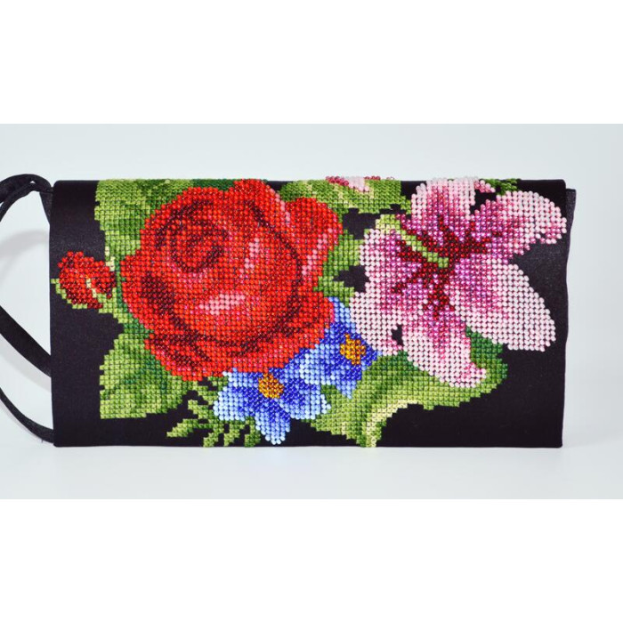 КЛ361лЧ1301k Барвиста вишиванка Набір для вишивки бісером - Клатч Лілеї, троянди, незабудки 21x13 см льон, чорний