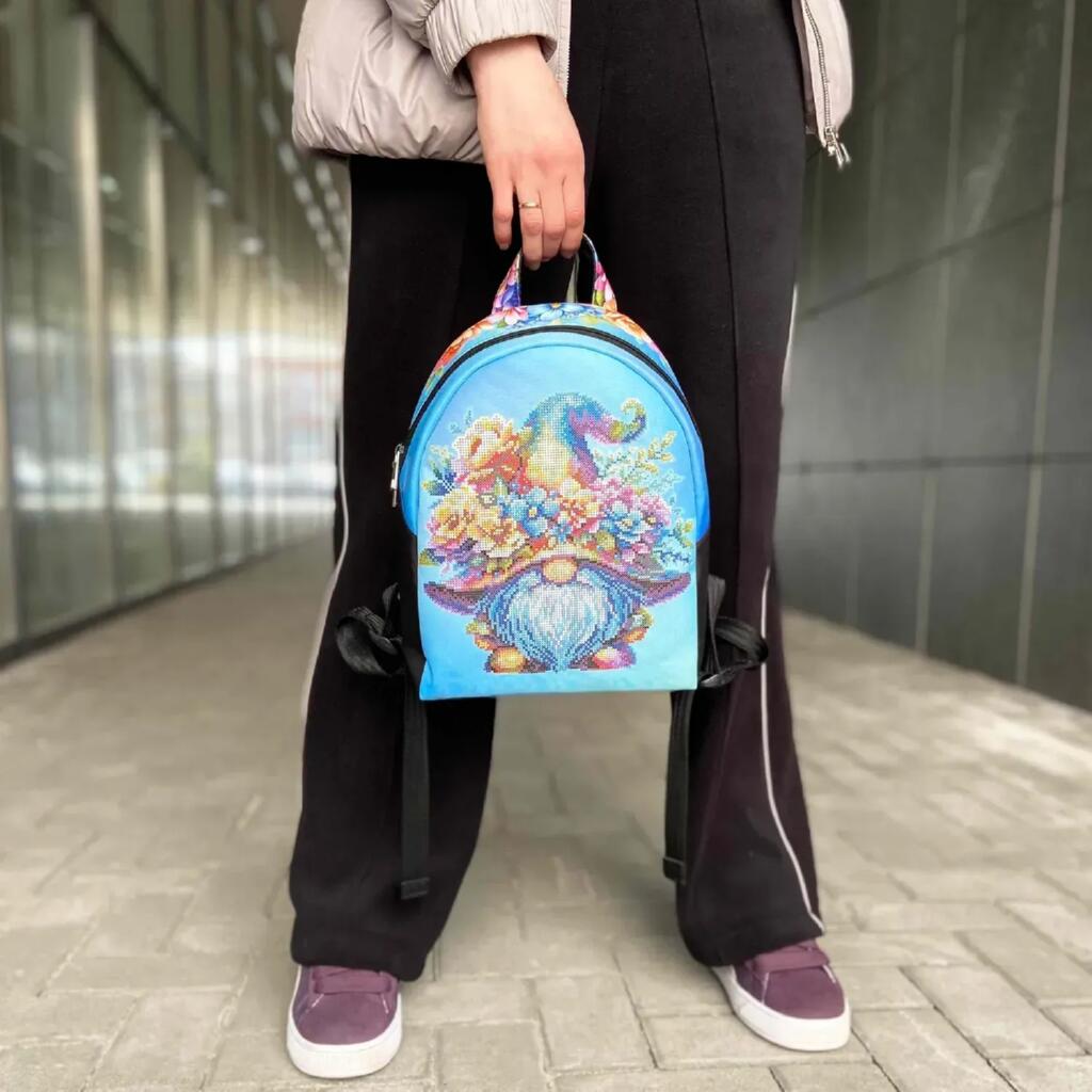 ТБ_Рюкзак_803 Virena Набір для вишивки бісером - Рюкзак Гном з квітами, 24x30x8 см