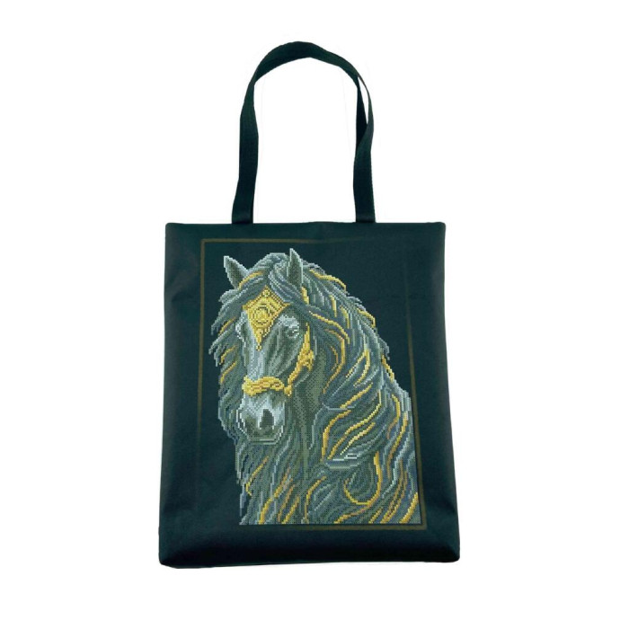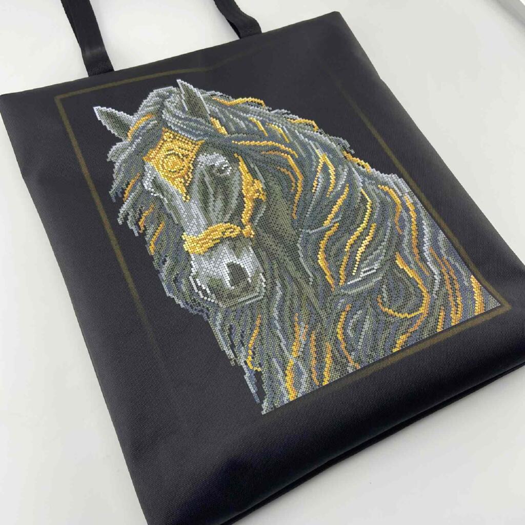 ТБ_Шоппер_653 Virena Набір для вишивки бісером - Сумка-шопер Чорний кінь 38х42 см (сумочна тканина)