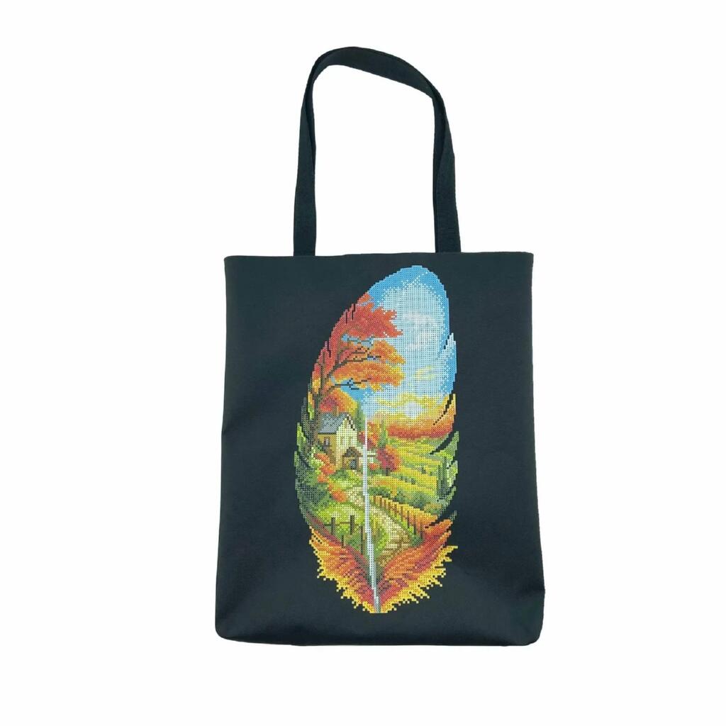 ТБ_Шоппер_657 Virena Набір для вишивки бісером - Сумка-шоппер Перо з пейзажем 38х42 см (сумочна тканина)